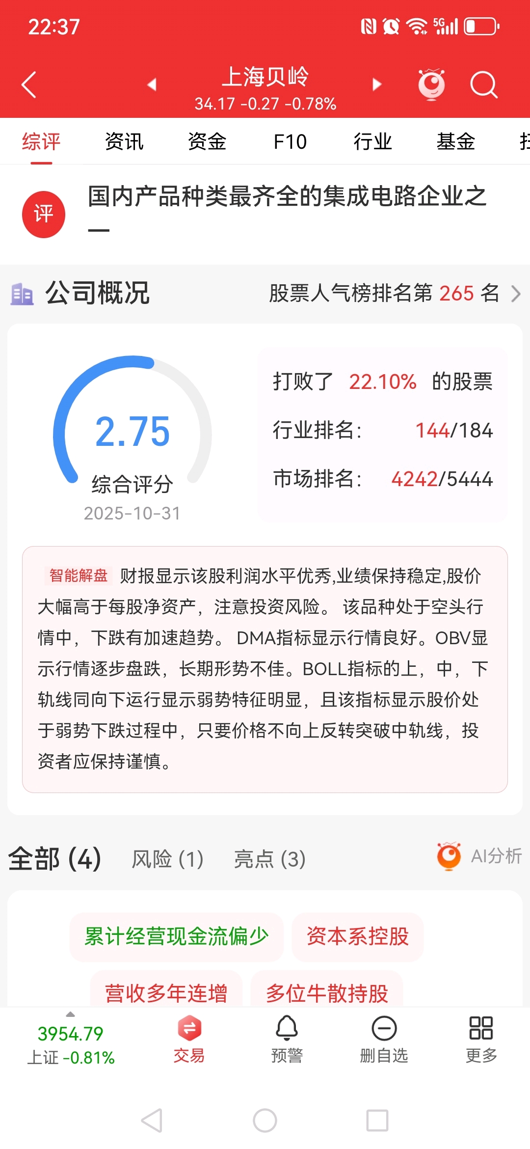 上海贝岭!还要继续下跌趋势!评分也这么差?为什么买到你没完没了的跌铁不休?