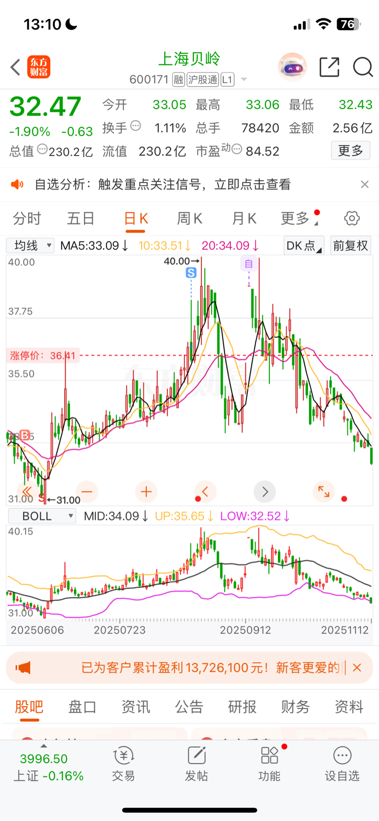 $上海贝岭(SH600171)$ 等30再买回来