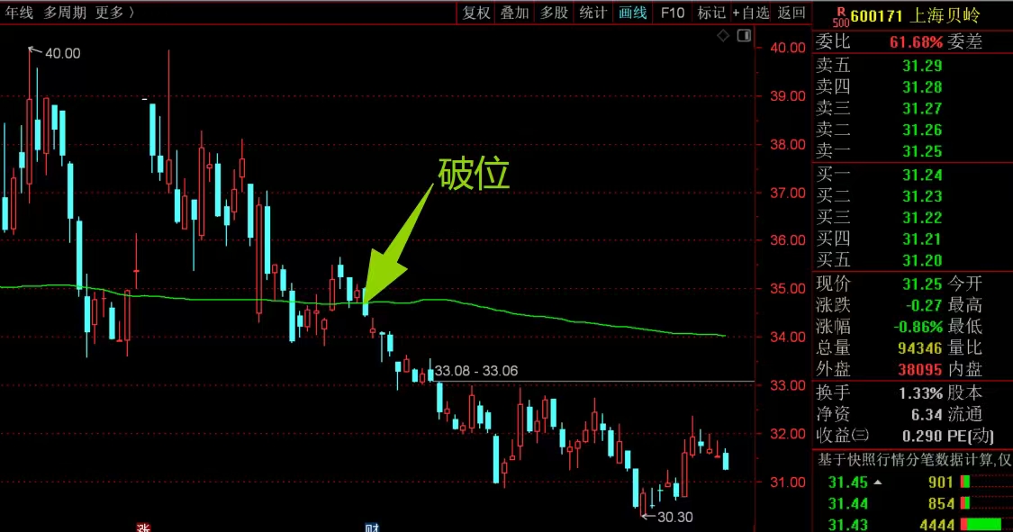 $上海贝岭(SH600171)$ 中期趋势非常弱,特别是跌破安全线34.71附近后,没有能马上拉起来,形成了破位走势,当时就需要大幅减仓应对,不然一直回落到现在比较被动。整体来看,这里还是处于下降通道中,不建议参与,有仓位的只能是轻仓观察,不要乱加仓#炒股日记# #周度策略#
