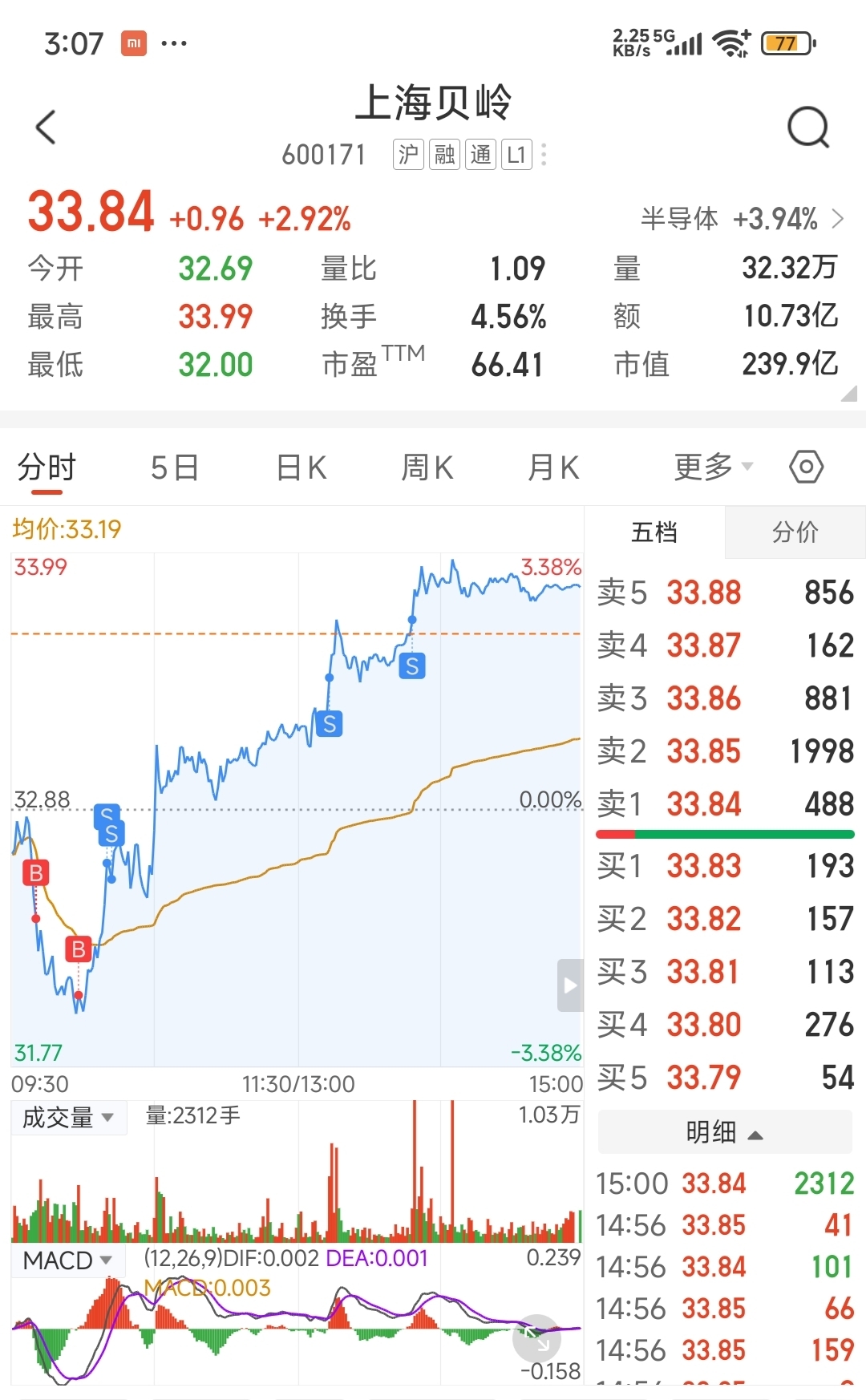 $上海贝岭(SH600171)$ 早上用尽子弹,孤注一掷 !刀口舔血!