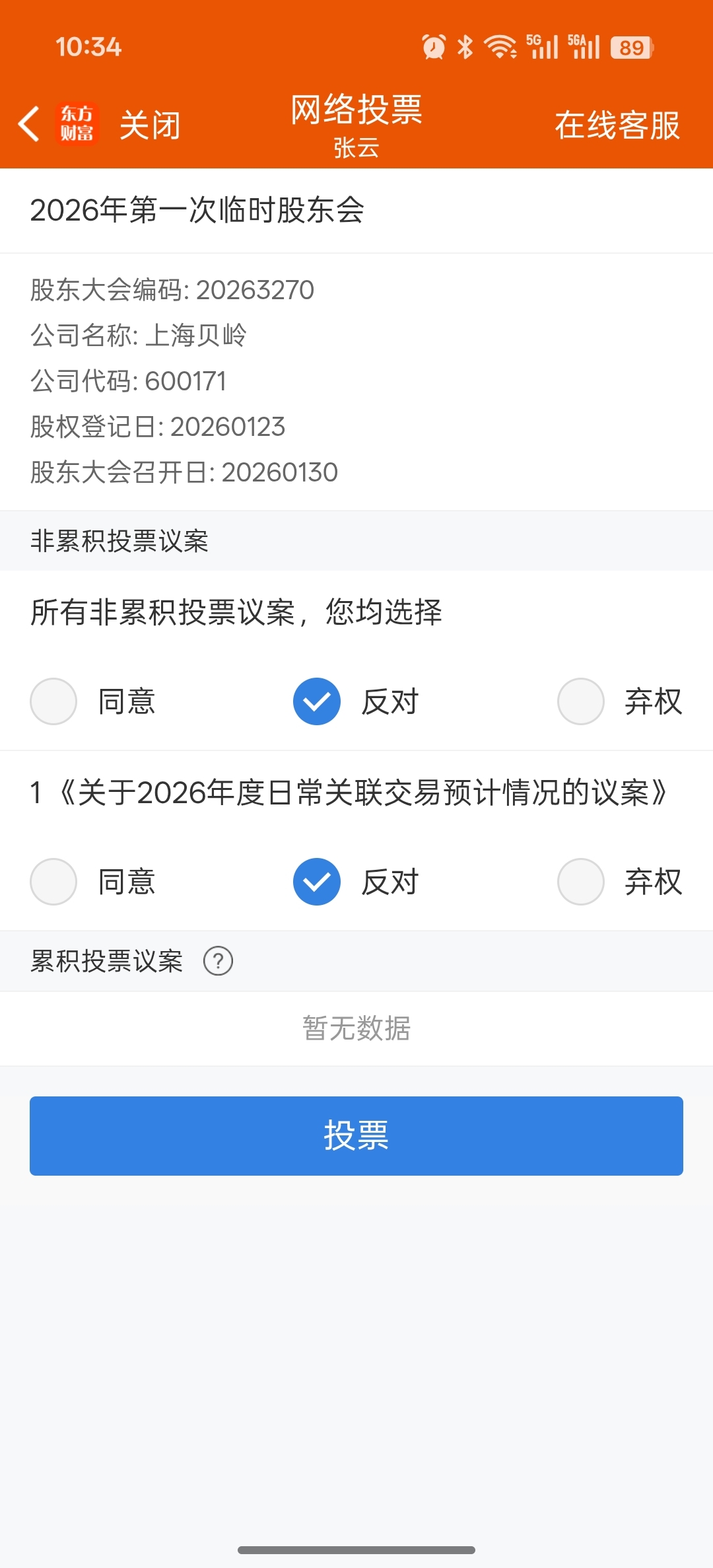 各位股东们投票了
