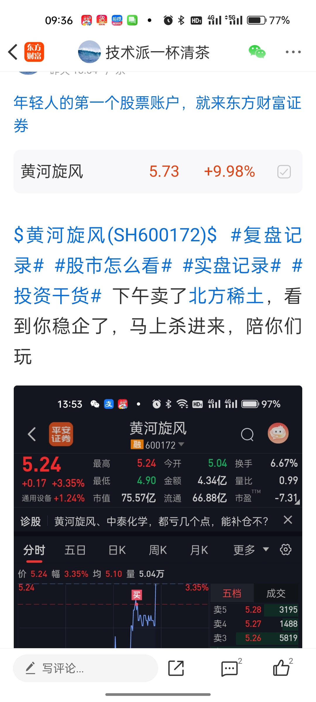 $黄河旋风(SH600172)$ #复盘记录# #股市怎么看# #实盘记录# 下周一和粉丝们继续努力赚钱
