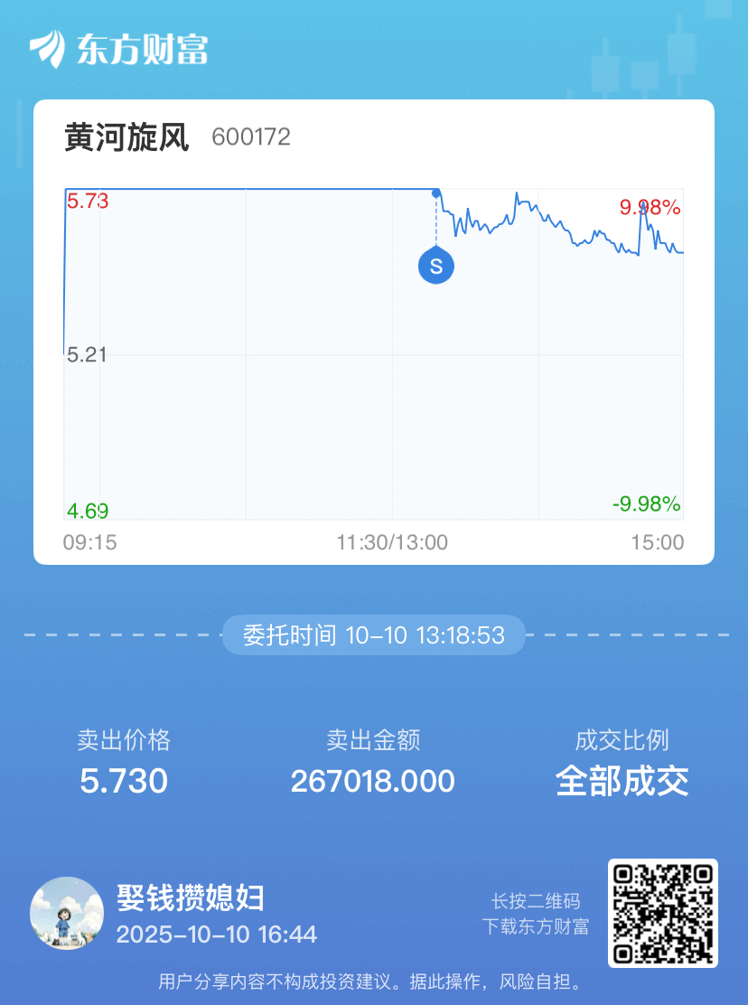 委托标的:黄河旋风买卖方向:卖出笔记:今天尾盘眼瞅着不对,板上出来了不知道是对是