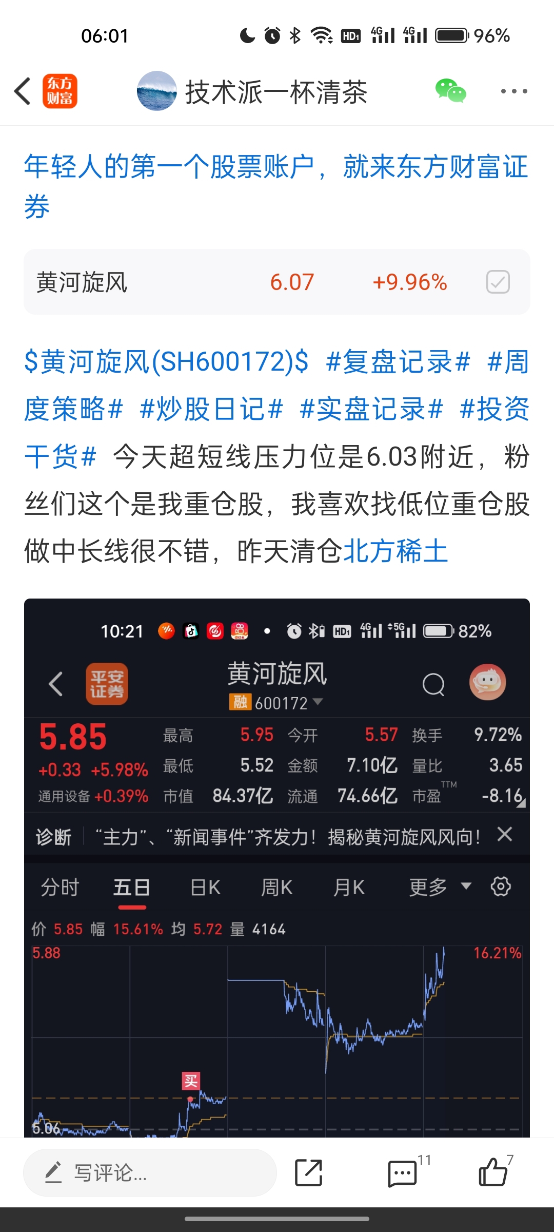 $黄河旋风(SH600172)$ #闻泰科技遭外籍管理层“夺权”!怎么看?# #复盘记录# #股市怎么看# #实盘记录# 黄河旋风,这几天一直都是在天量和超高换手率,超短线今天压力位是在6.39附近,今天一定要突破而且还要站稳这个位置,对超短线来说,这个位置很重要,昨天有些粉丝问我还能不能进,黄河旋风今天能站稳6.39上方这个位置,明天还会继续看涨