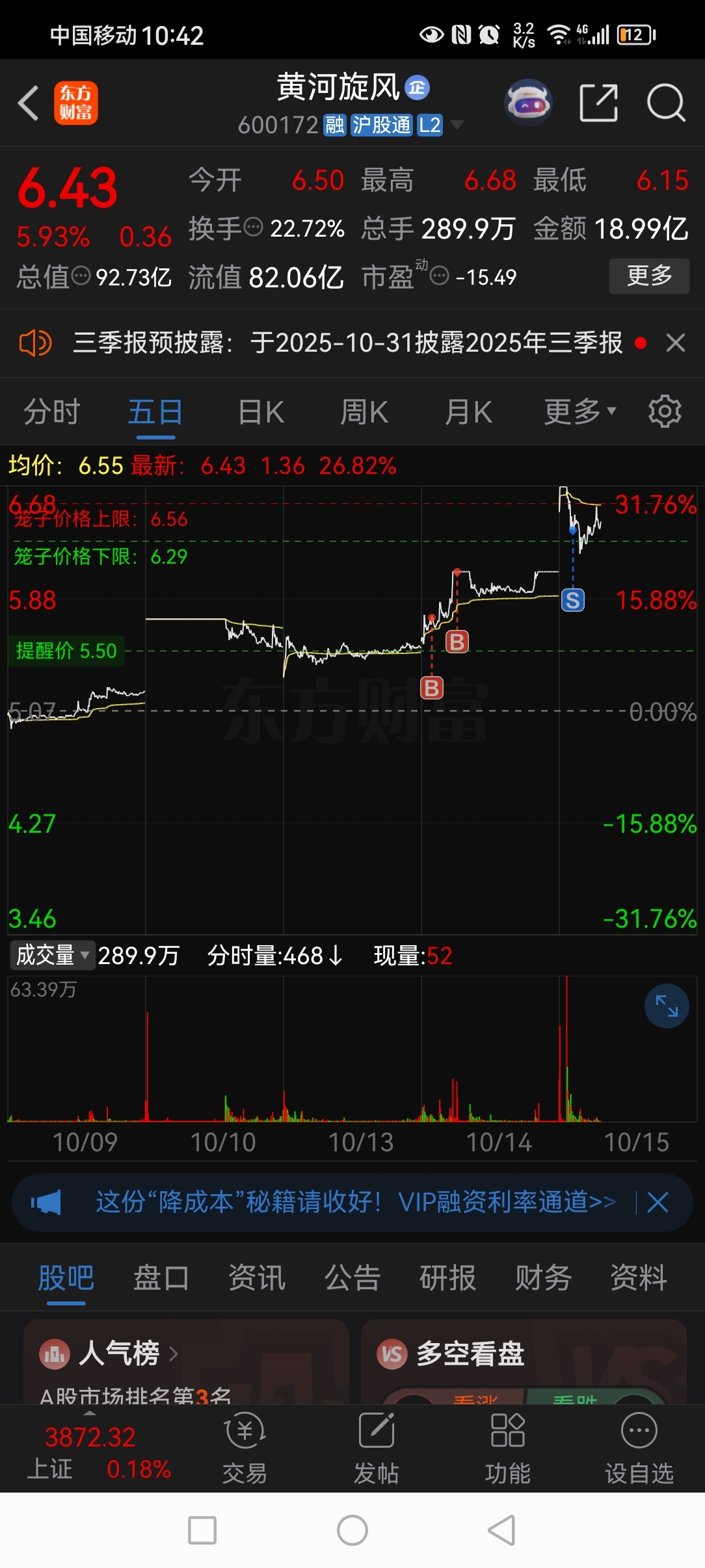$黄河旋风(SH600172)$ 可惜忘记设置条件单了