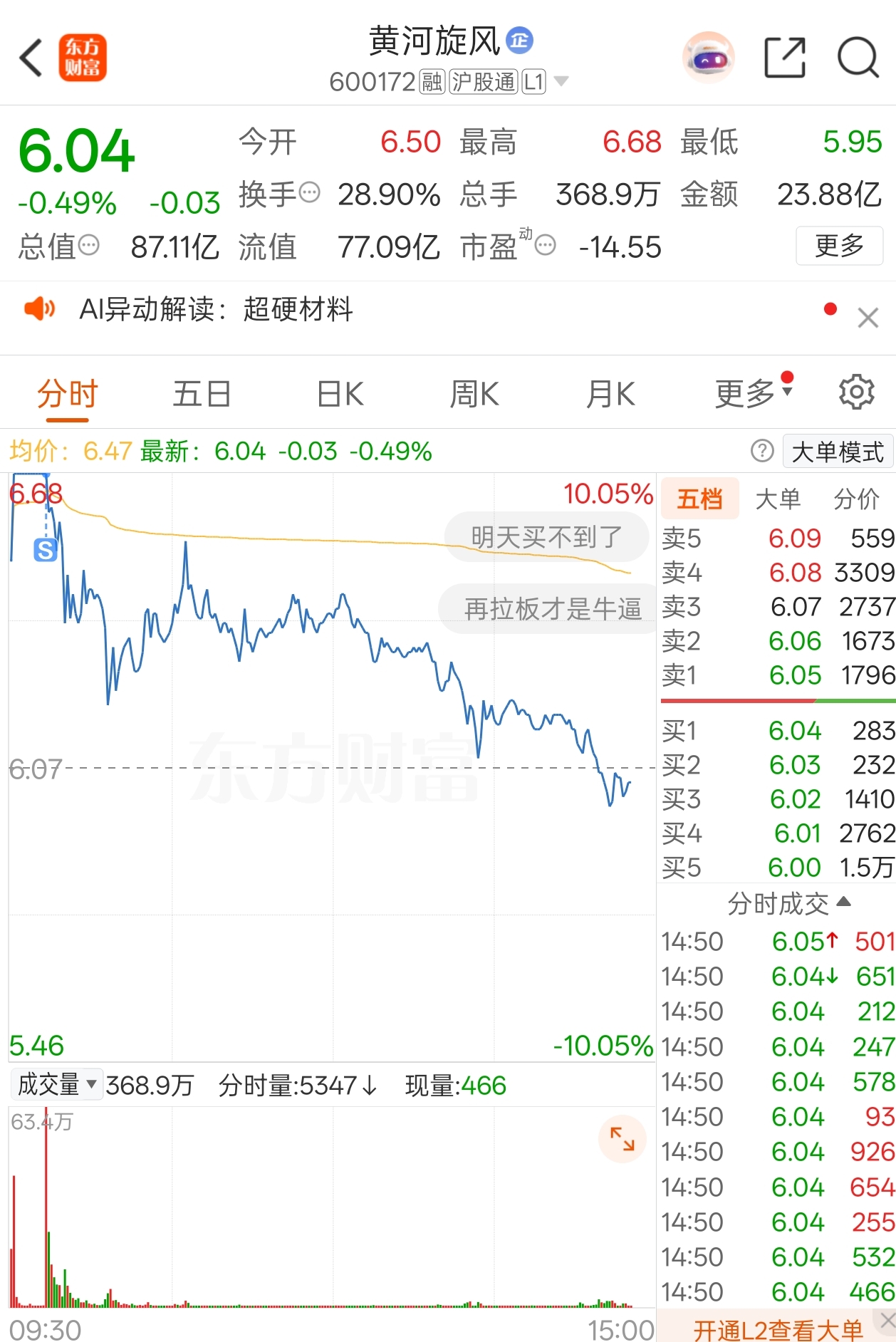 $黄河旋风(SH600172)$ 涨停板出了,入了和顺电气