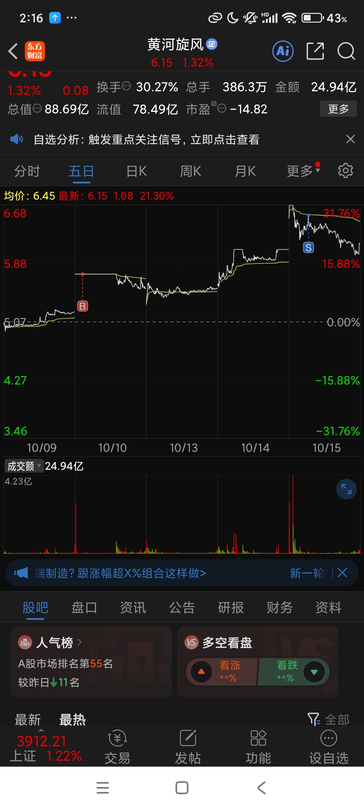 $黄河旋风(SH600172)$ 我的操作有没有小喷子?这个操作有人给我点赞吗?
