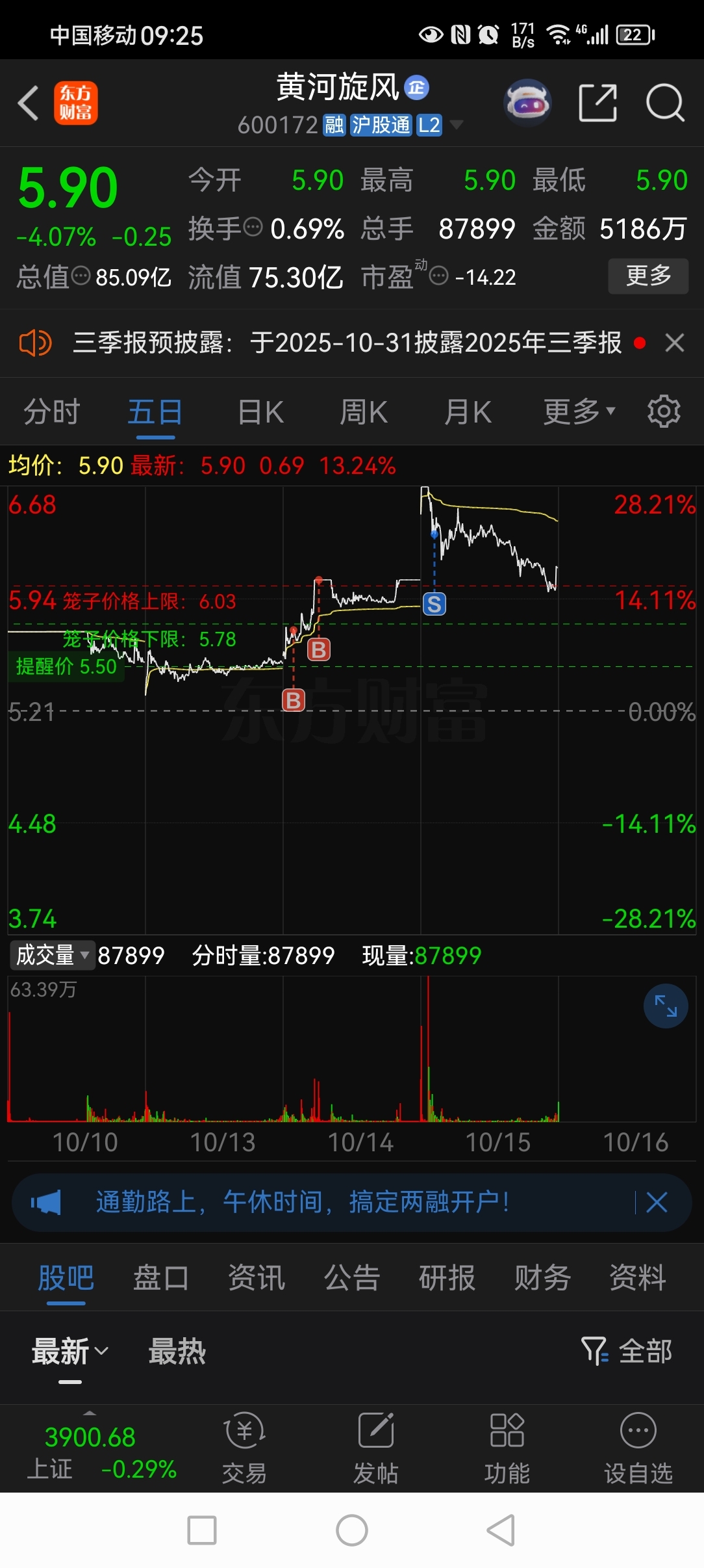 $黄河旋风(SH600172)$ 昨天追涨停板的老铁实在太惨了