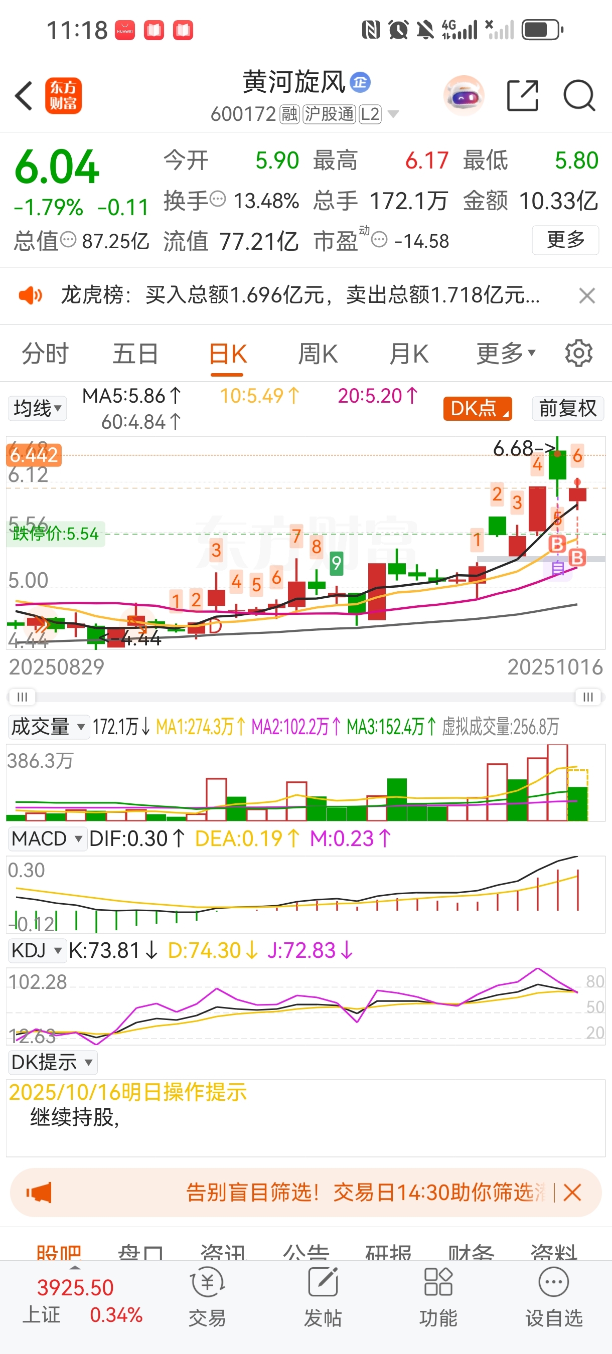$黄河旋风(SH600172)$ 爱拉不拉,符合自己模式就上车,无惧风雨……