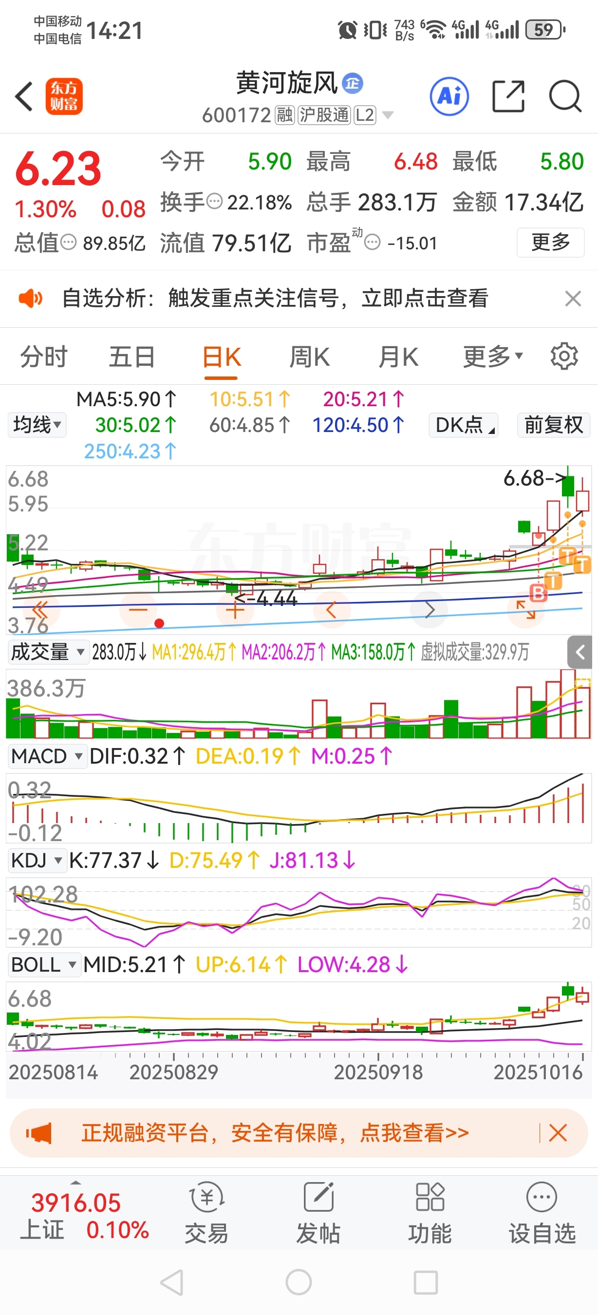 $黄河旋风(SH600172)$ 两天正好流出资金2亿多,把涨停那天的资金出完了,我也格局不动了!留2000股看看吧,