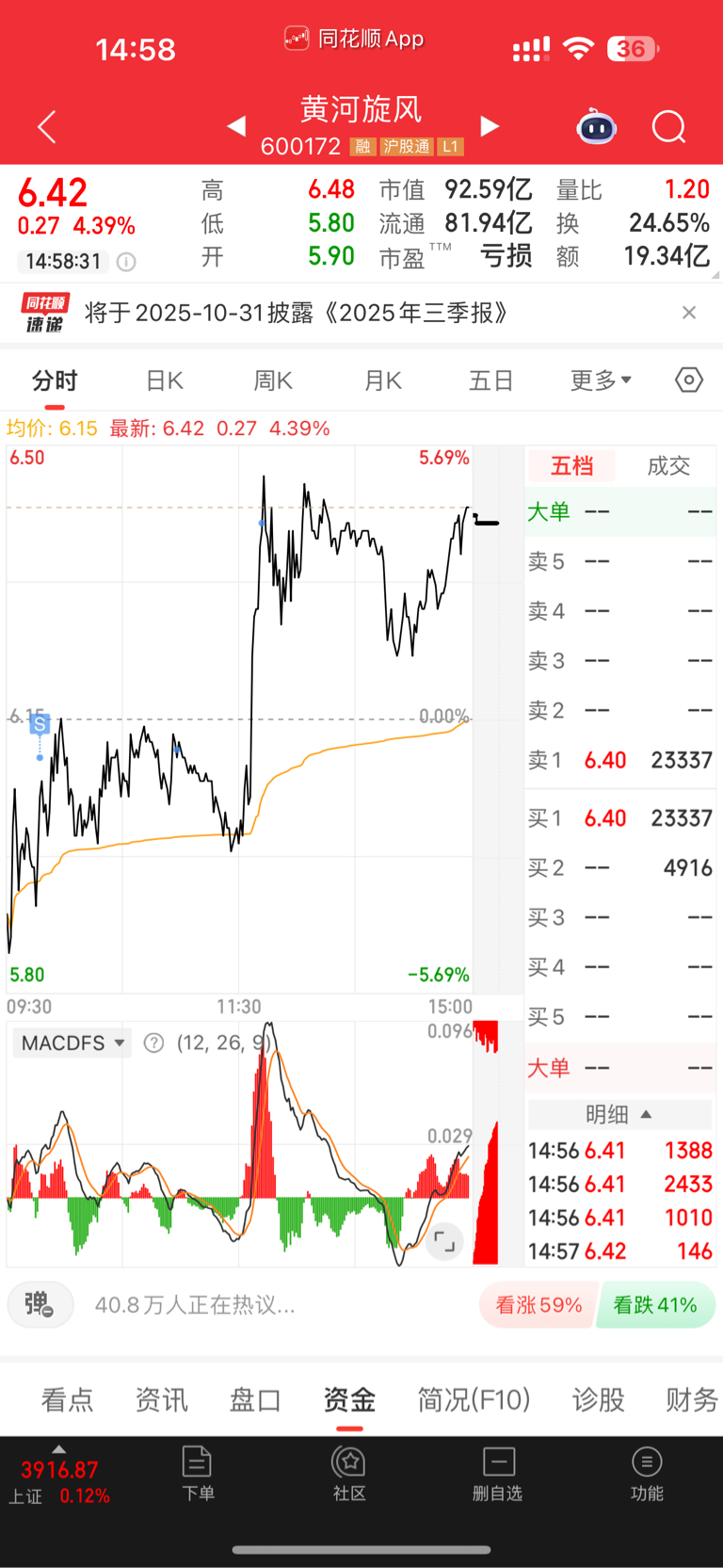 $黄河旋风(SH600172)$ 卖飞了,认,祝你们好运。