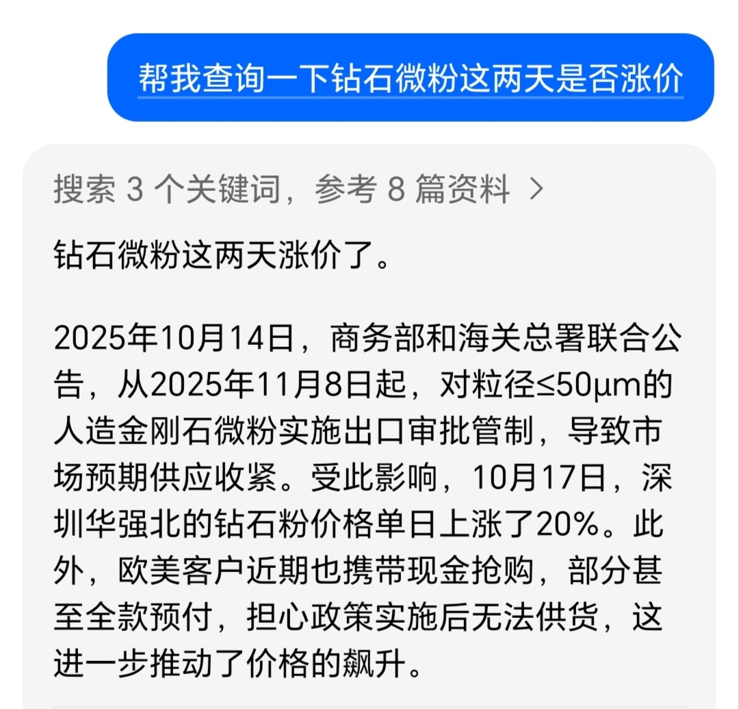 $黄河旋风(SH600172)$ 华强北钻石微粉涨价百分之20