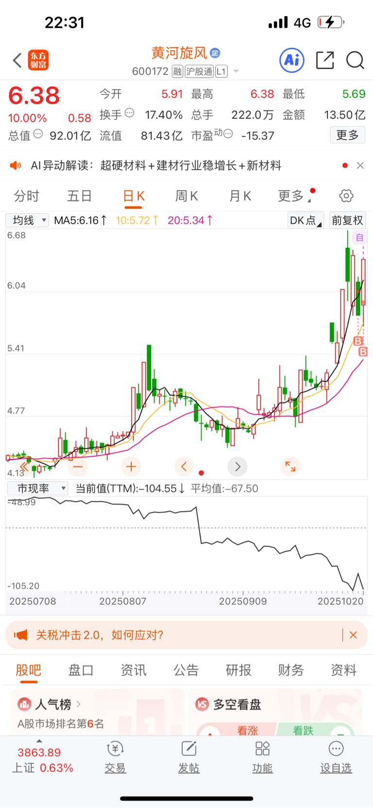 $黄河旋风(SH600172)$