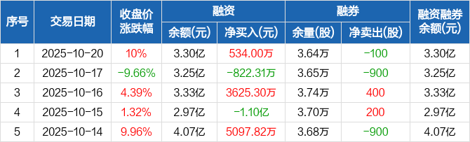黄河旋风:融资净买入534万元,融资余额3.3亿元(10-20)
