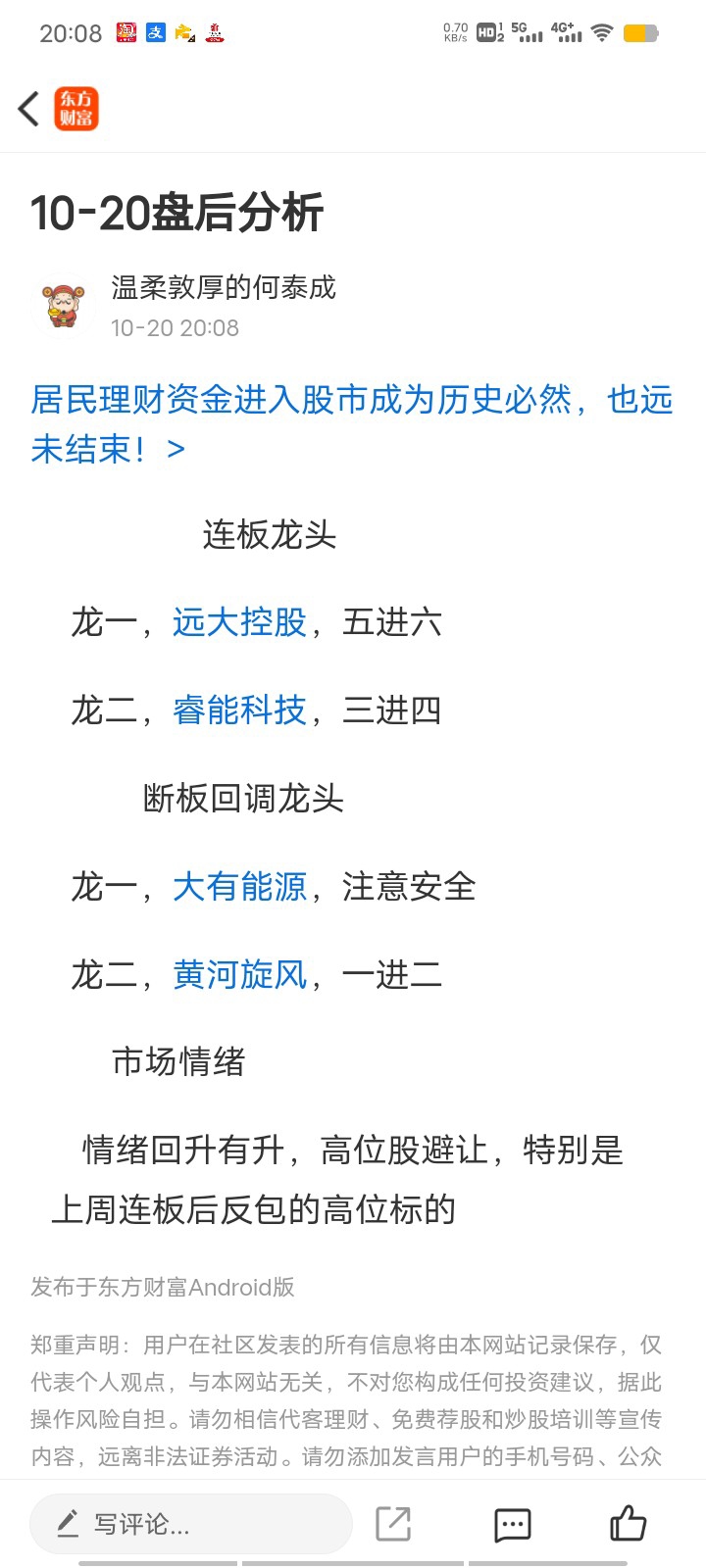 温馨提示: 1.根据《证券法》规定,禁止编造、传播虚假信息或者误导性信息,扰乱证券市场;2.用户在本社区发表的所有资料、言论等仅代表个人观点,与本网站立场无关,不对您构成任何投资建议。用户应基于自己的独立判断,自行决定证券投资并承担相应风险。《东方财富社区管理规定》