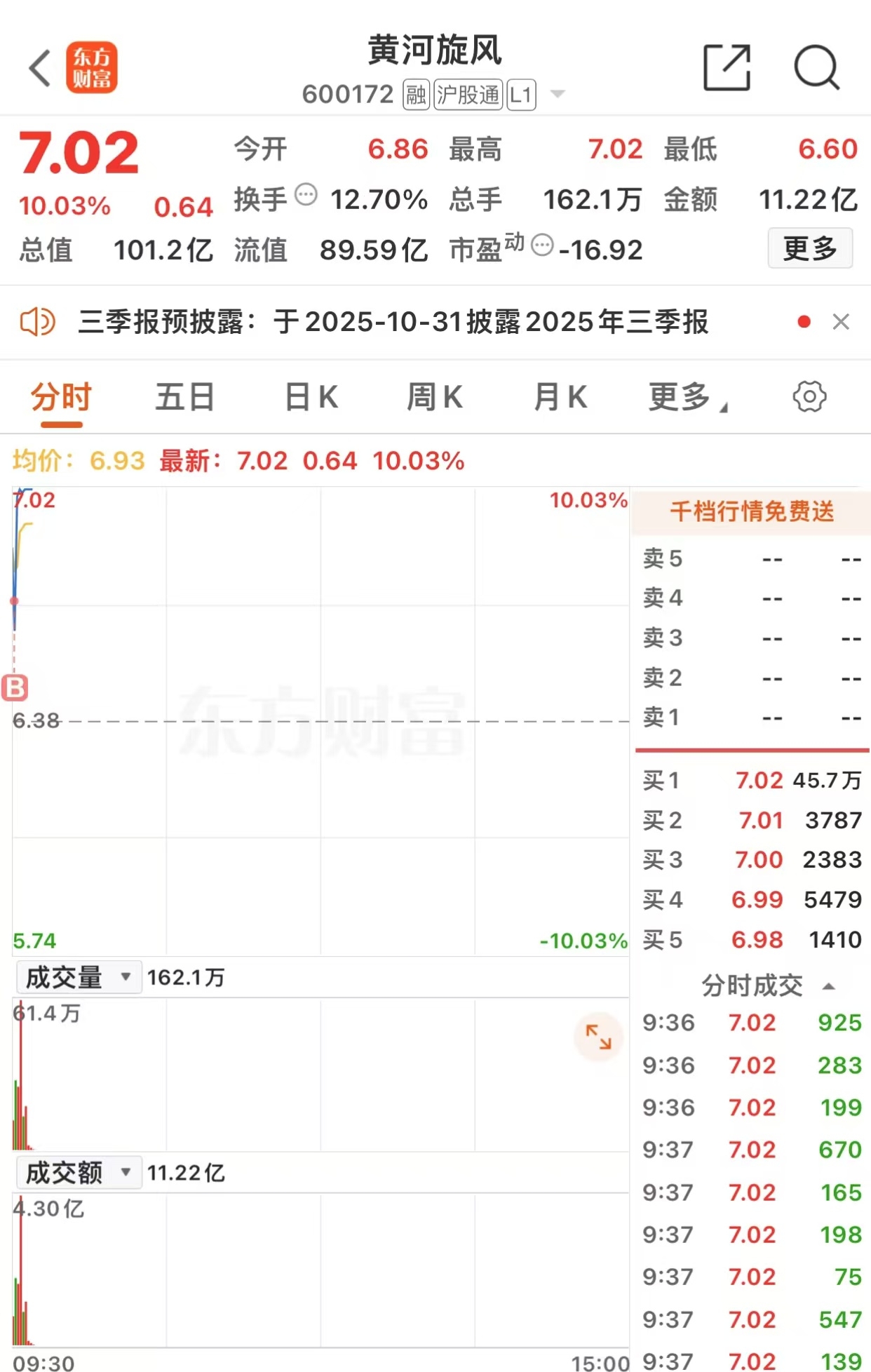 $黄河旋风(SH600172)$ #炒股日记# #强势机会# #投资干货#