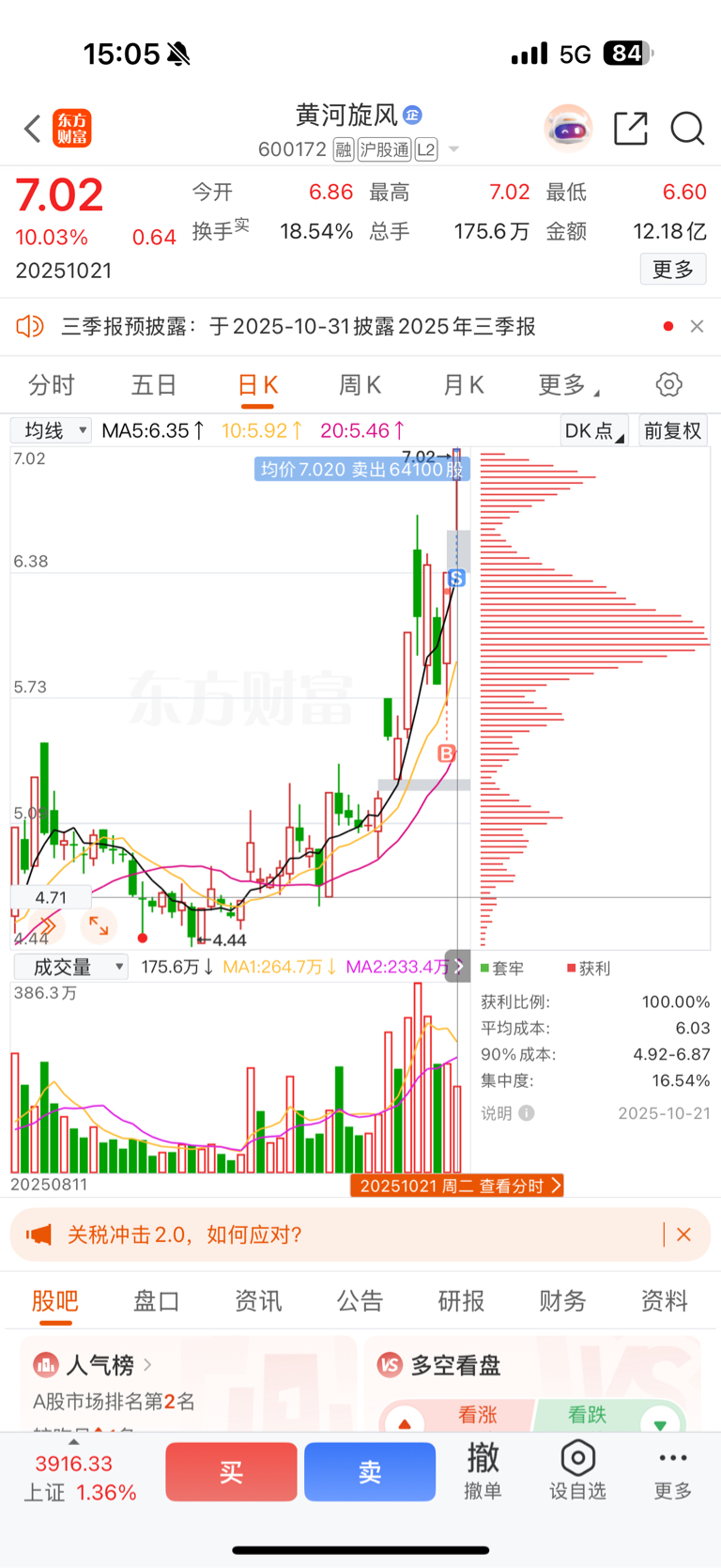$黄河旋风(SH600172)$ 出了买了山河智能还有闻泰