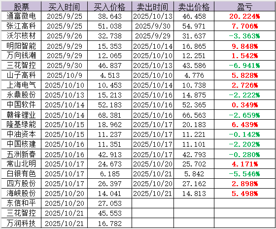 操作上,出白银有色、海峡股份,入三花智控、万润科技,继续持有东信和平,节奏以板块轮动为主,关注资金延续性。