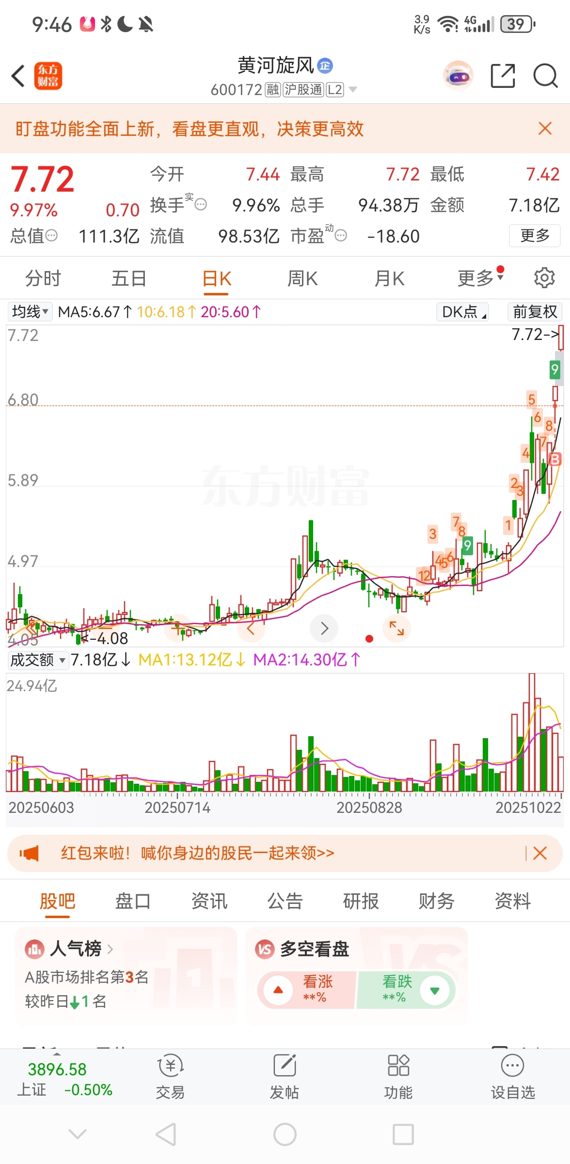 $黄河旋风(SH600172)$ 直接下班,希望板到周五,大家一起发财