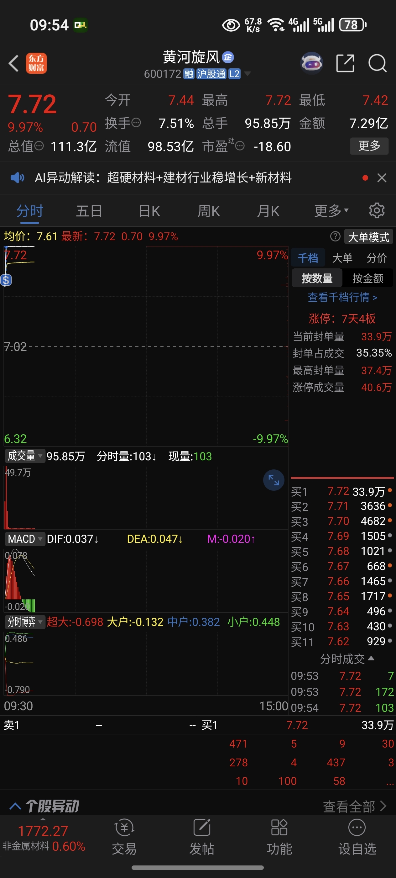 $黄河旋风(SH600172)$ 又像上次一样,盯盘的时候显示的数据不准,上板时一下17万多手封单,一下才几百手,害我又飞了,但是看超级复盘,它是一直封单递增到30万手的,刚才发了一条,还给我帖子删了,dc我F~!?、,。*#%~?*$