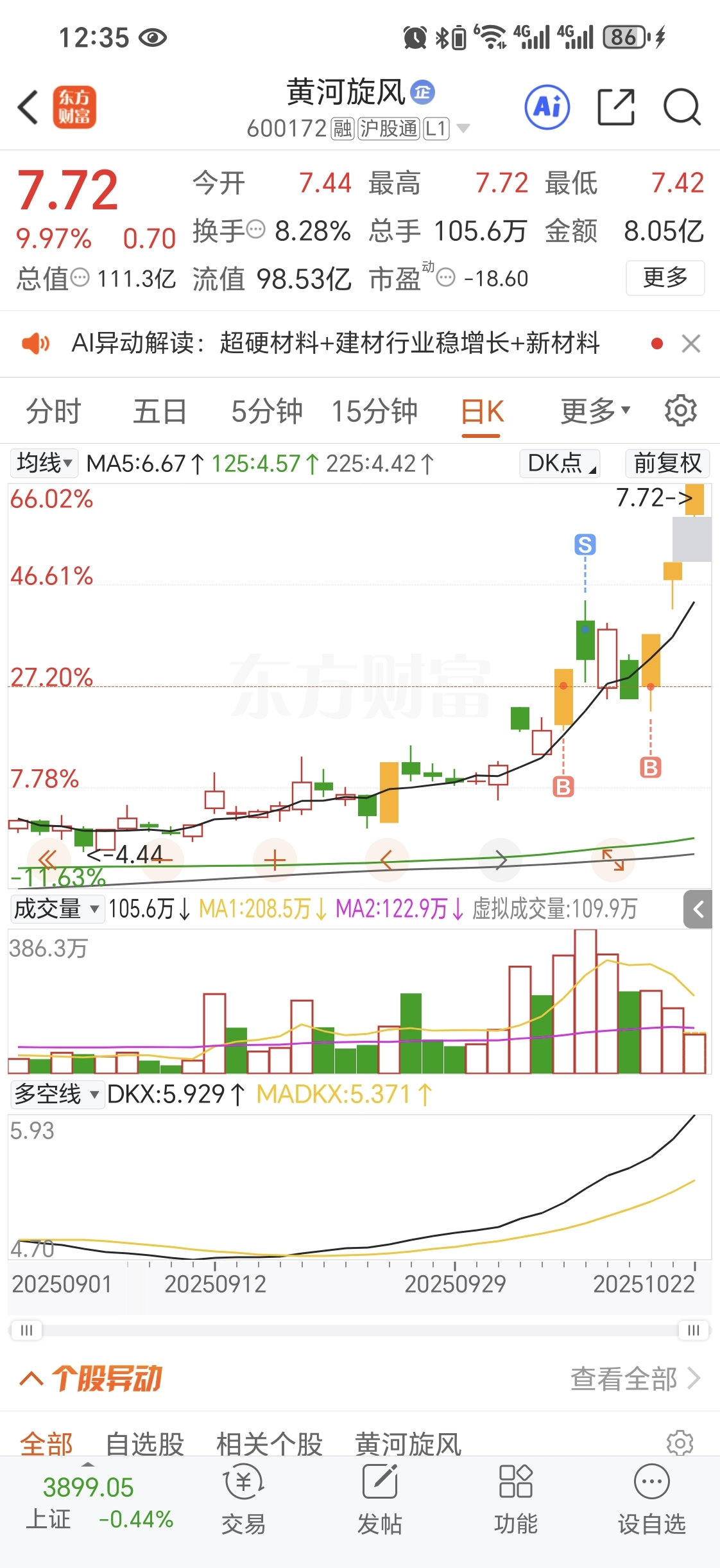 $黄河旋风(SH600172)$ 出来显摆一下。