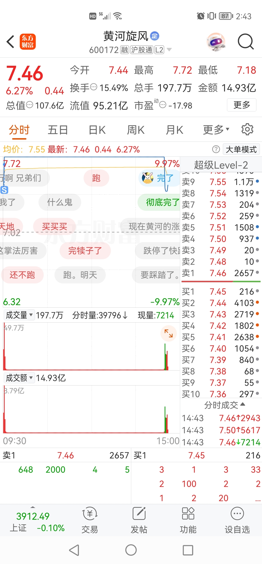 $黄河旋风(SH600172)$ 感谢主力,明天再来接