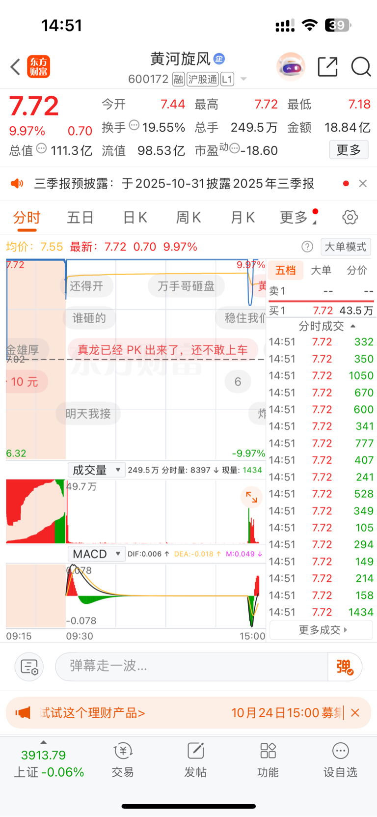 $黄河旋风(SH600172)$ 尾盘敢上车的也真是艺高人胆大,这钱该你赚