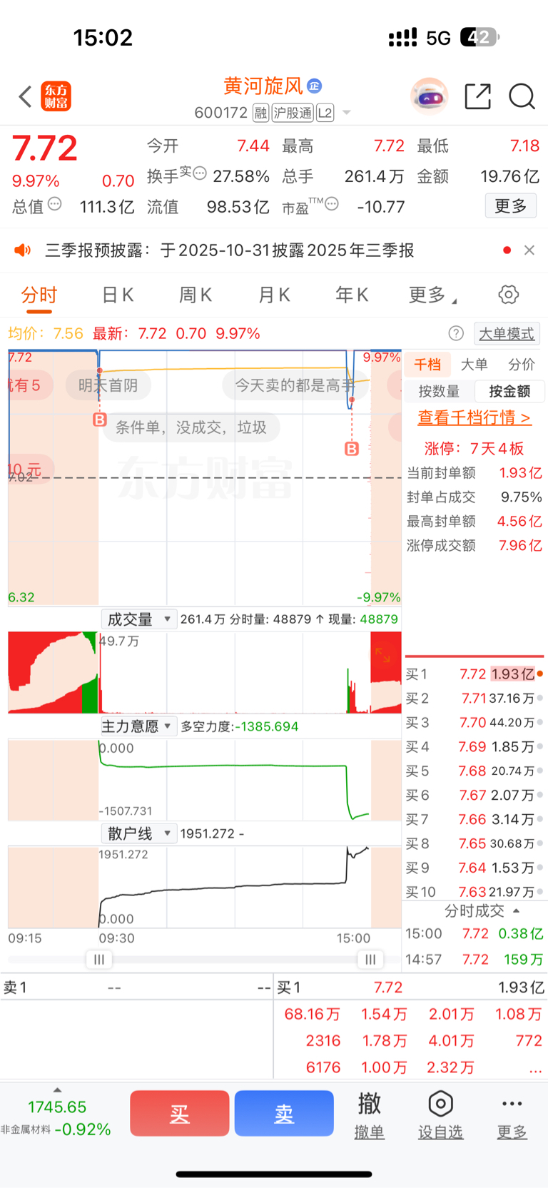 $黄河旋风(SH600172)$ 还好涨停了#强势机会# #复盘记录# #实盘记录#