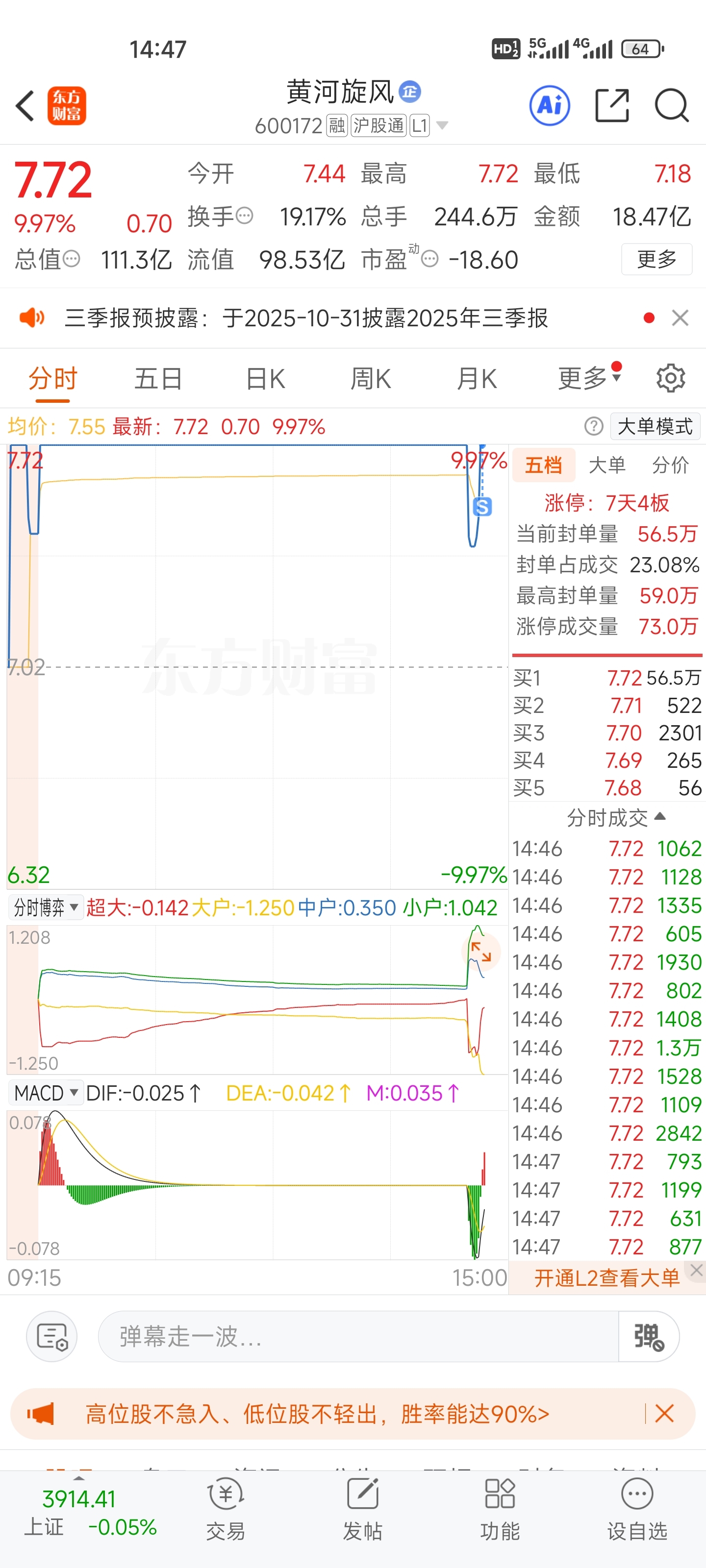 $黄河旋风(SH600172)$ 本来想明天走,祝大家好运#炒股日记#