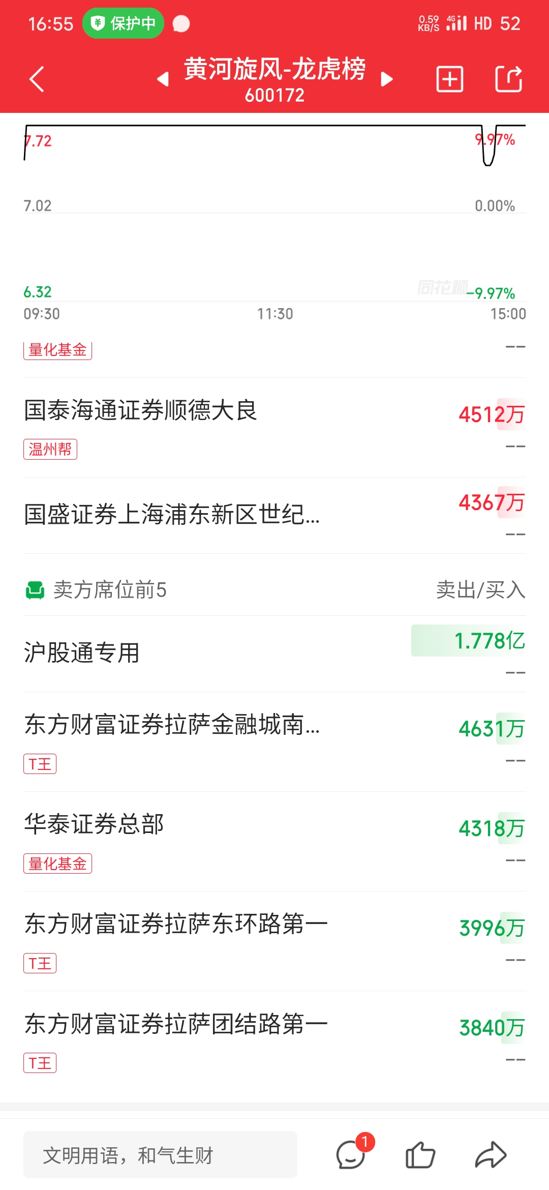 $黄河旋风(SH600172)$ 榜出来了家人全洗走了