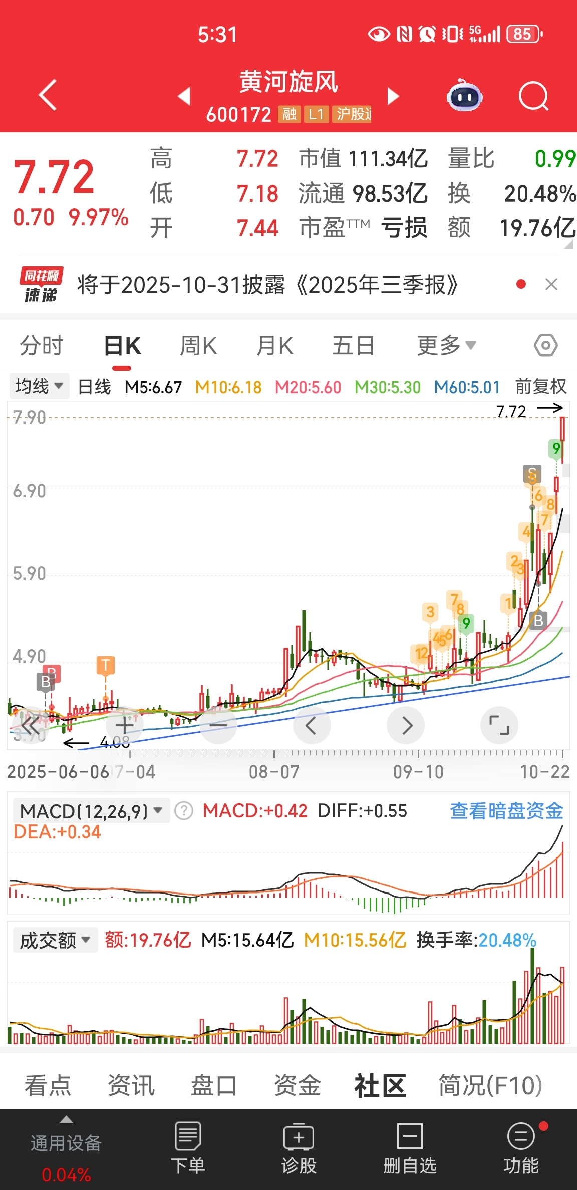 $黄河旋风(SH600172)$ 老友记们,坚持住