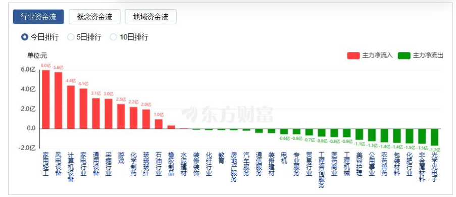 行业板块涨少跌多,采掘行业、风电设备、房地产服务、工程机械、房地产开发板块涨幅居前,贵金属、珠宝首饰、船舶制造、煤炭行业、燃气板块跌幅居前。深地经济概念股全天走强,神开股份、石化机械、中信重工三连板。湖北国资概念延续强势,武汉控股等多股晋级两连板。油气股午后爆发,贝肯能源涨停。银行板块逆势走强,农业银行14连阳续创历史新高。行业紫金方面,截至收盘,家用轻工、风电设备、计算机设备等净流入排名靠前,其中家用轻工净流入5.97亿。
