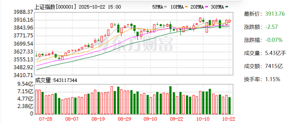 沪指今日震荡整理,收盘跌0.07%,收报3913.76点;深证成指跌0.62%,收报12996.61点;创业板指跌0.79%,收报3059.32点。沪深两市成交额仅有16679亿,较昨日缩量2060亿。个股方面,上涨股票数量接近2300只,逾70只股票涨停。