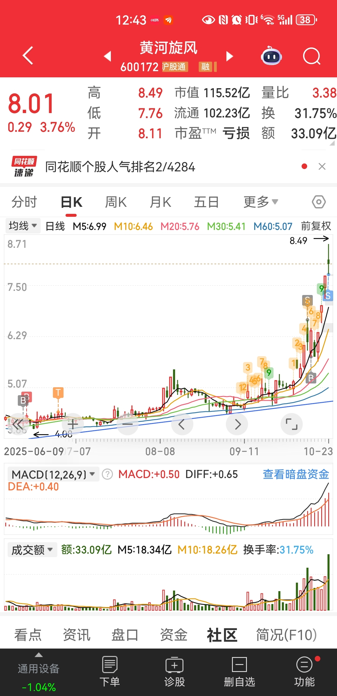 $黄河旋风(SH600172)$ 今天有点不符合自己模式先走了,感谢主力,感谢黄河,还会再回来的,里面的小伙伴加油
