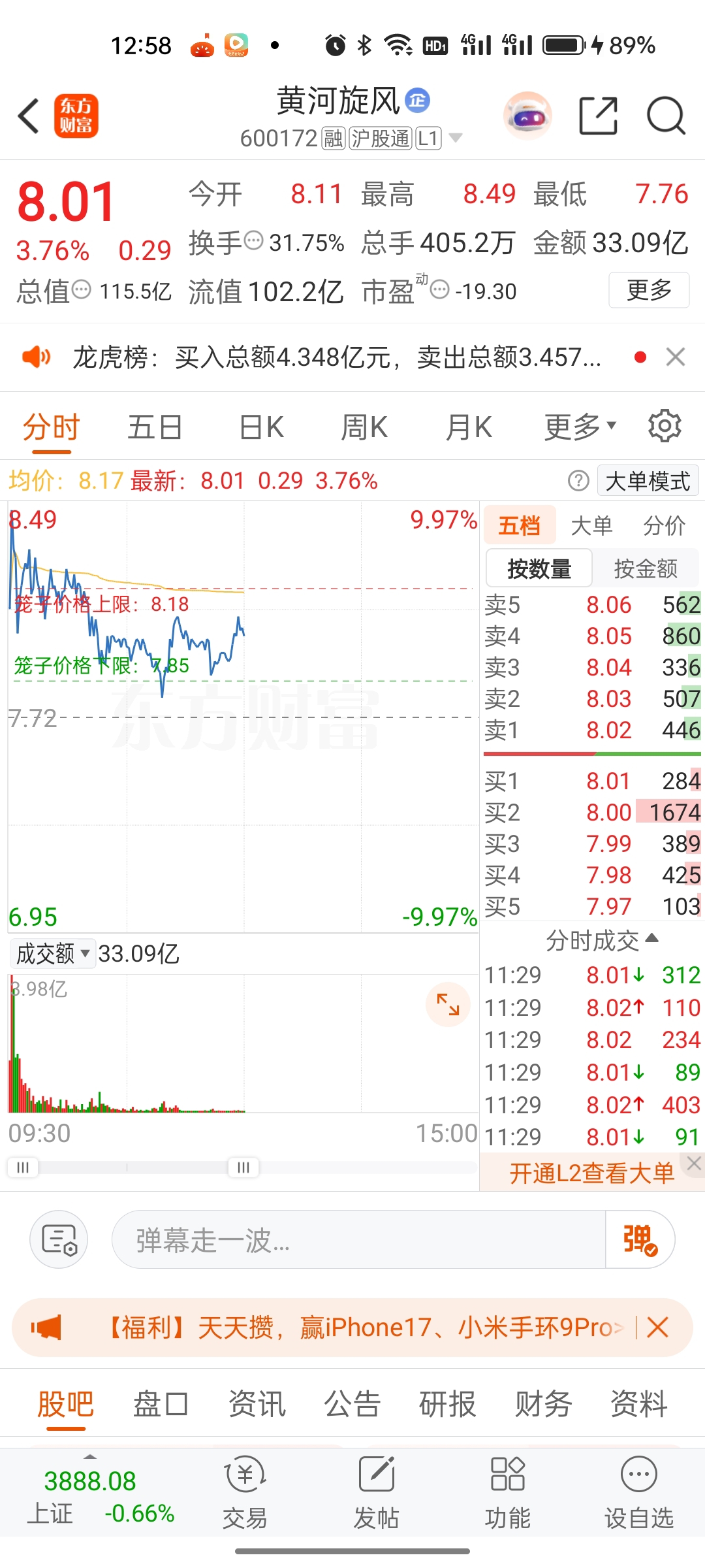 黄河旋风,下午如果不能涨到6个点以上,那明天就要回调了,我...