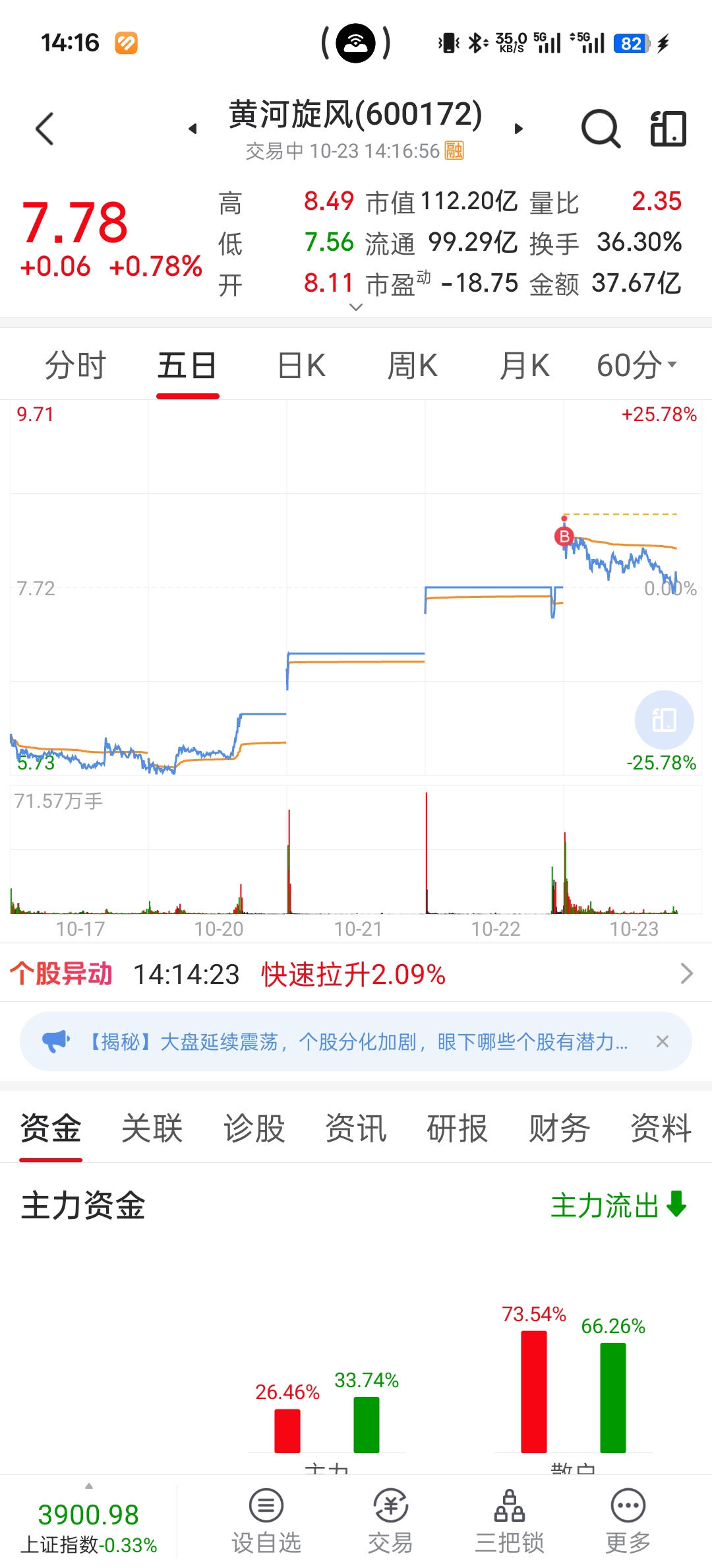 $黄河旋风(SH600172)$ 真是手贱啊去打板,这下惨了,明天还得低开,肉没吃到,反而还亏至少15个点