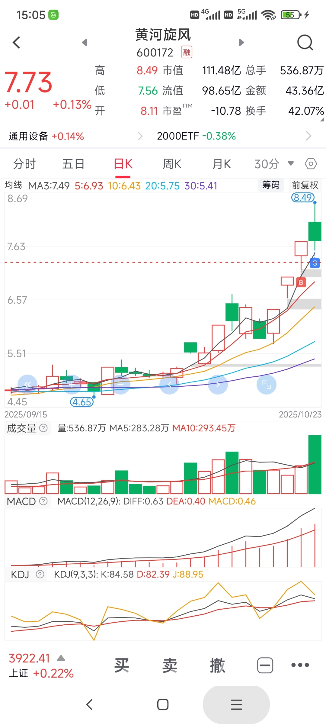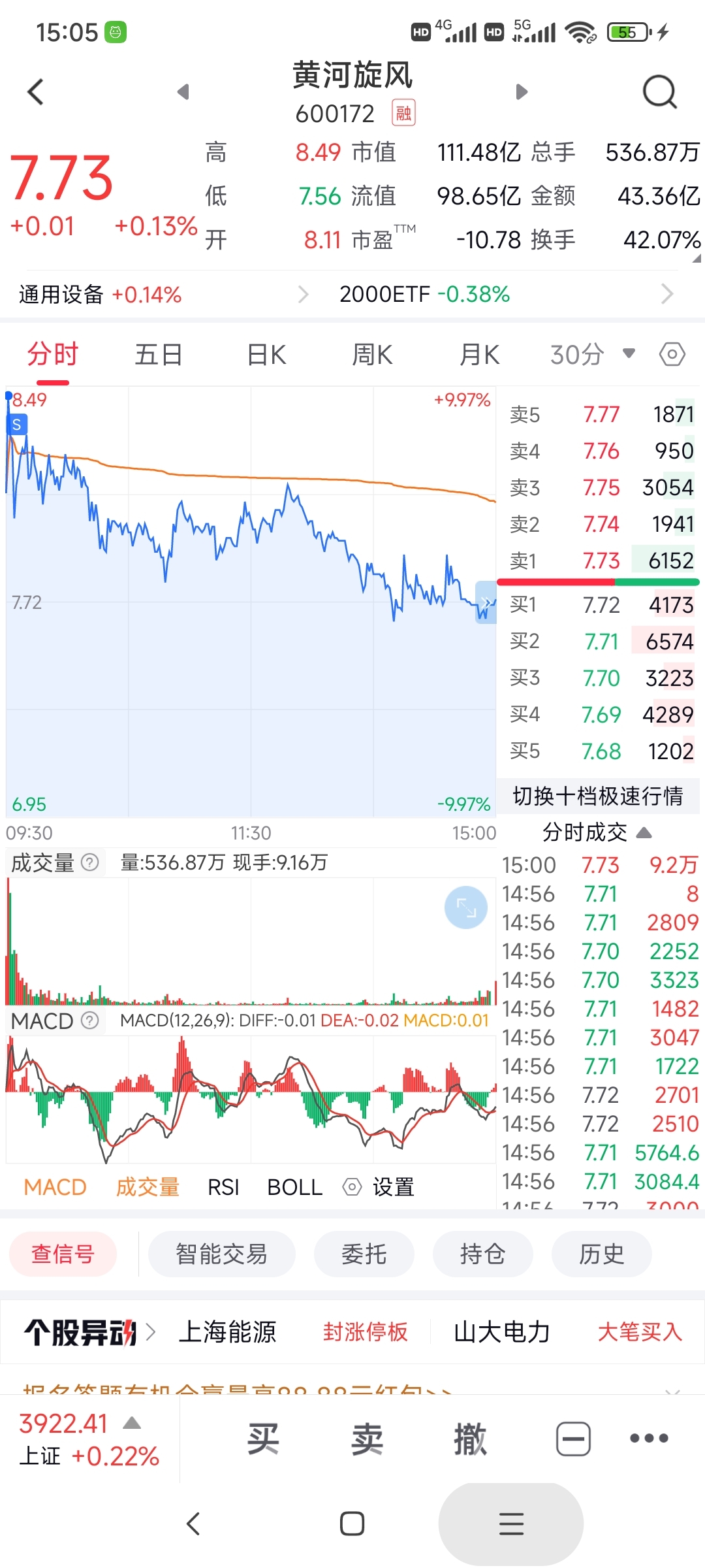昨天尾盘炸板7.31抄的,今天开盘涨停出了,下午挂了7.51买回(可惜没成交)