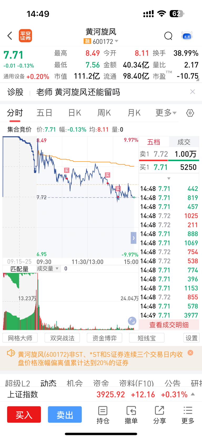 $黄河旋风(SH600172)$ 我全仓了,别噶我,