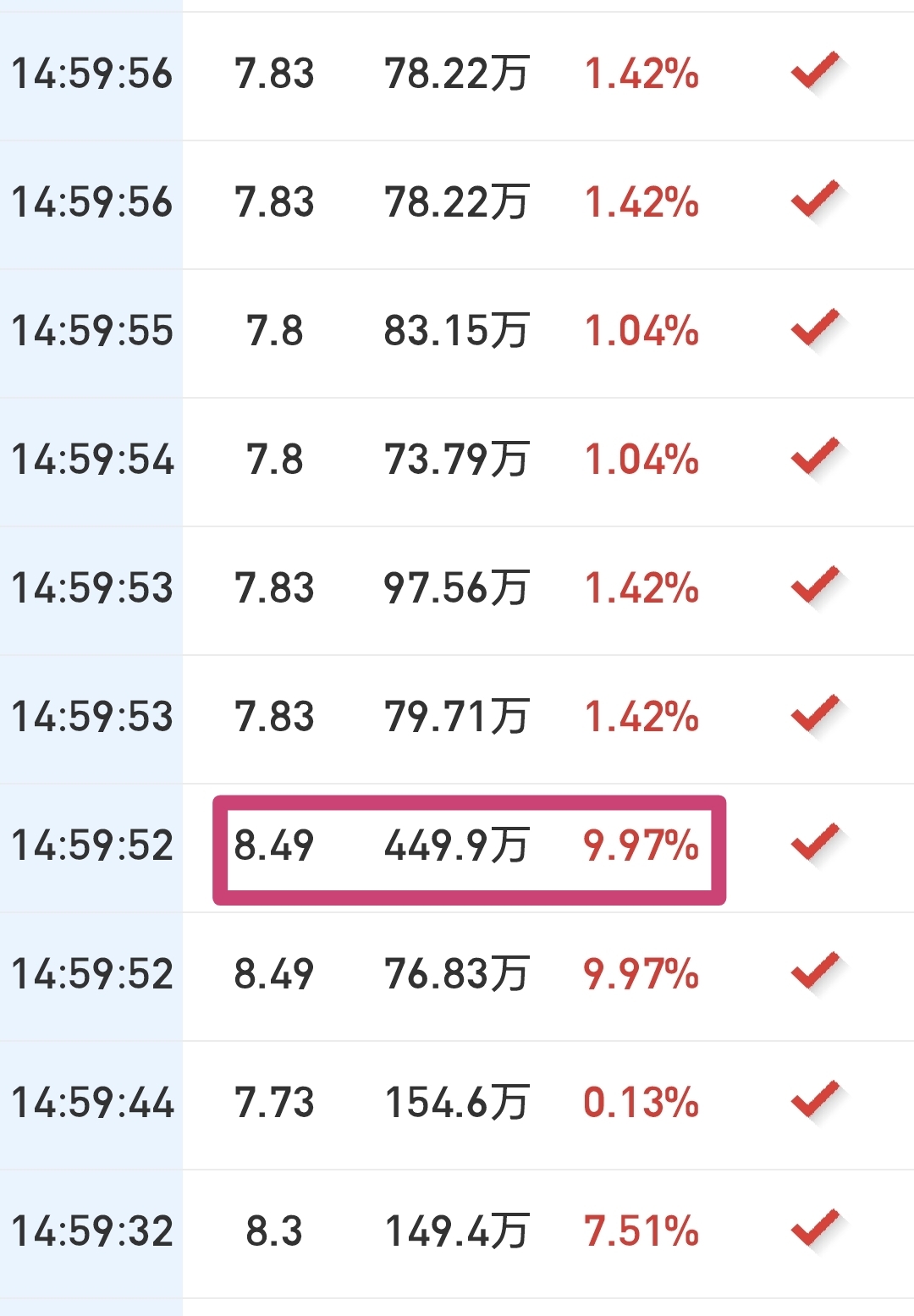 这哥们尾盘抢筹直接挂涨停抢走了449.9万,必须点赞
