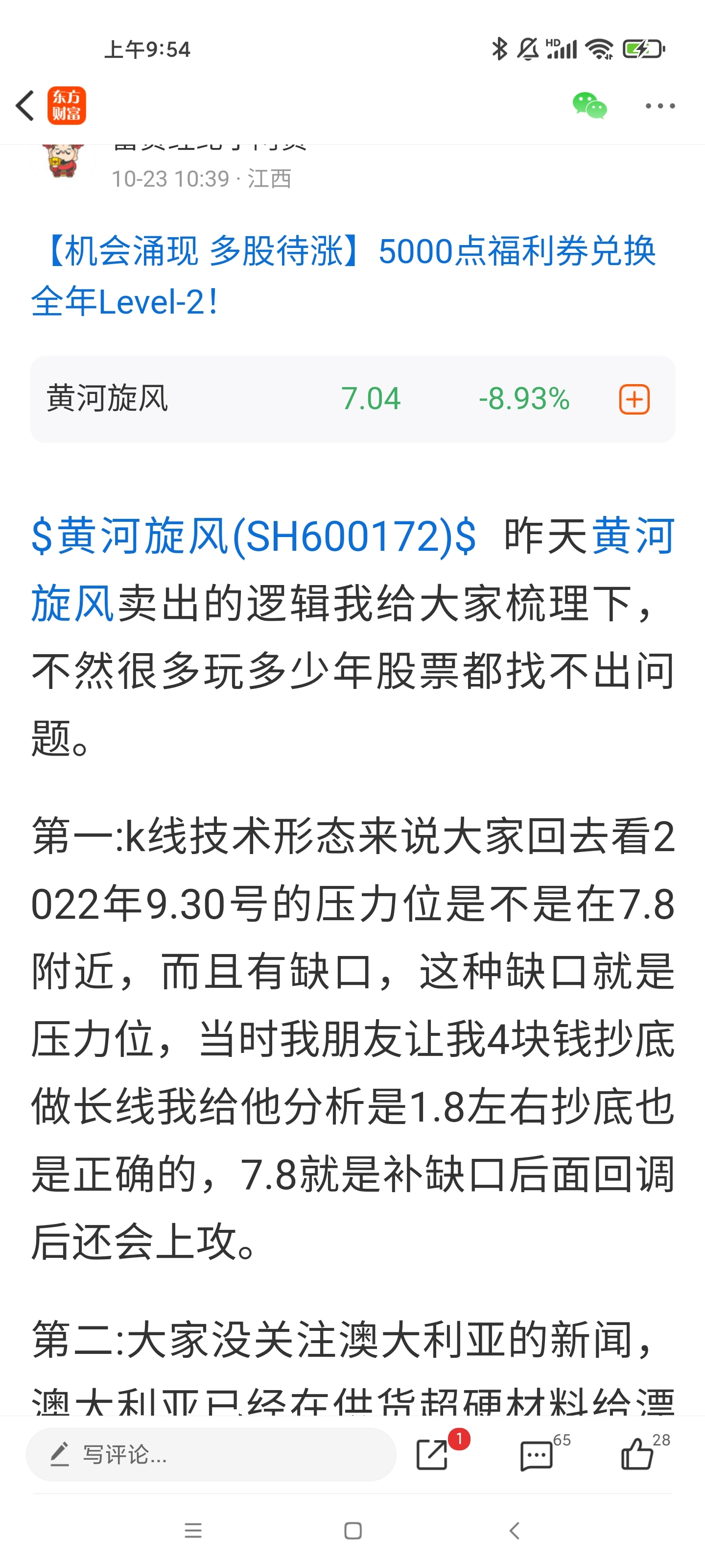 $黄河旋风(SH600172)$ 昨天8.49接盘的人是多倒霉,我都发了卖出