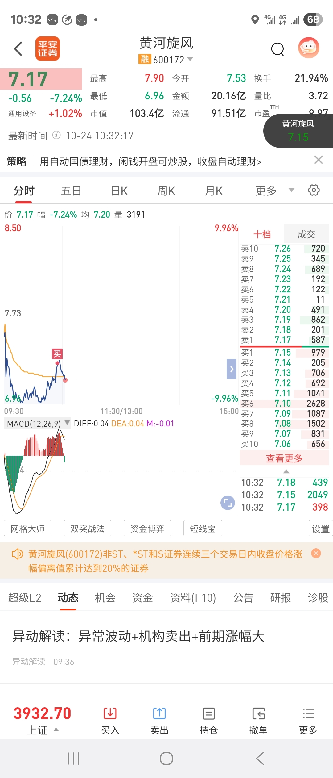 $黄河旋风(SH600172)$