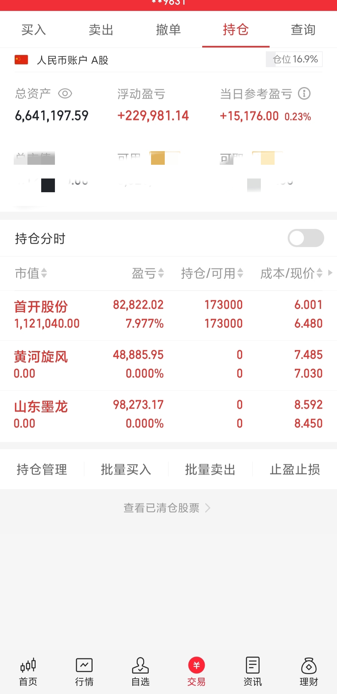 $黄河旋风(SH600172)$ $山东墨龙(SZ002490)$ 周五了保守一点先把高标票稳住利润先手落袋了。$首开股份(SH600376)$ 成本不高,加上周一出监管,监管结束等风来,继续持有观望。