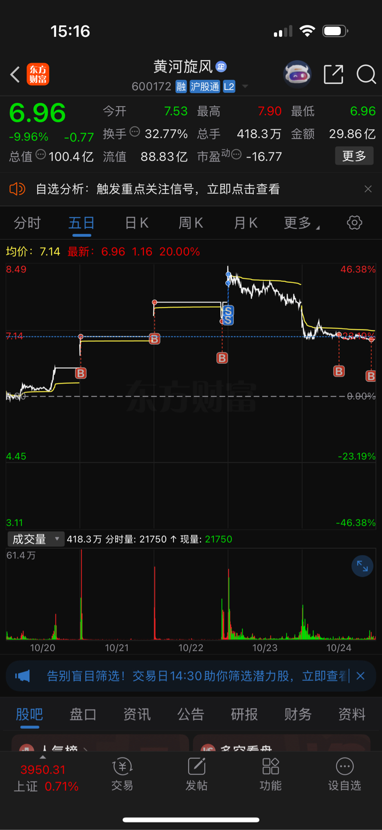 $黄河旋风(SH600172)$ 兄弟们我又回来了陪你们一起亏