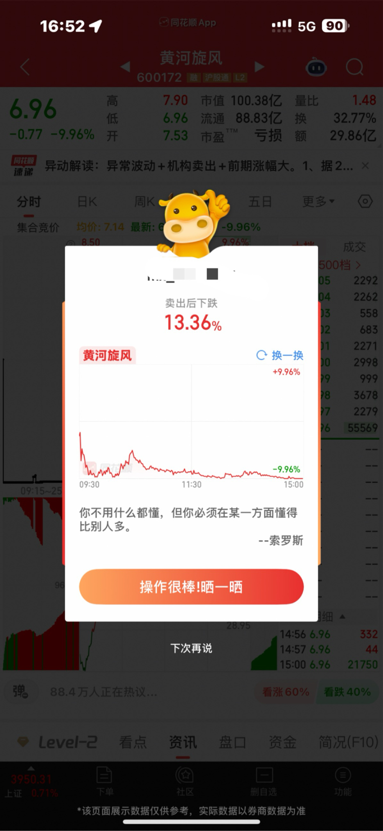 $黄河旋风(SH600172)$ 因为这个票我见了凌晨5.30的k线图,周四买入的时候我已经后悔了,看着吧里这么多人讨论反包,我知道行情已经结束了,本做了-7走的想法,没想到给我高开了,感谢主力开局让我跑了。我已经痛的遍体凌伤,一个散户的感受。