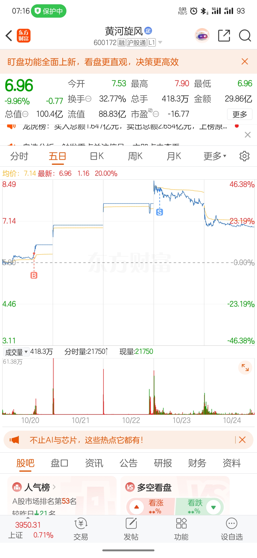 $黄河旋风(SH600172)$ 还好不贪