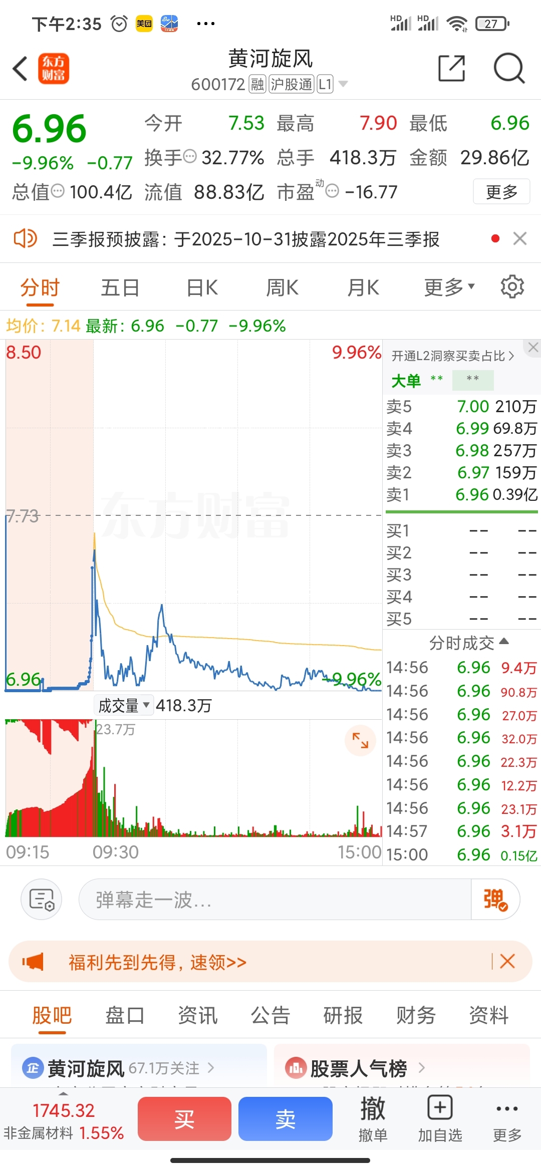 $黄河旋风(SH600172)$ 和四方达启动时一样