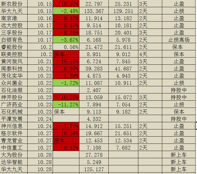 10月交易记录: