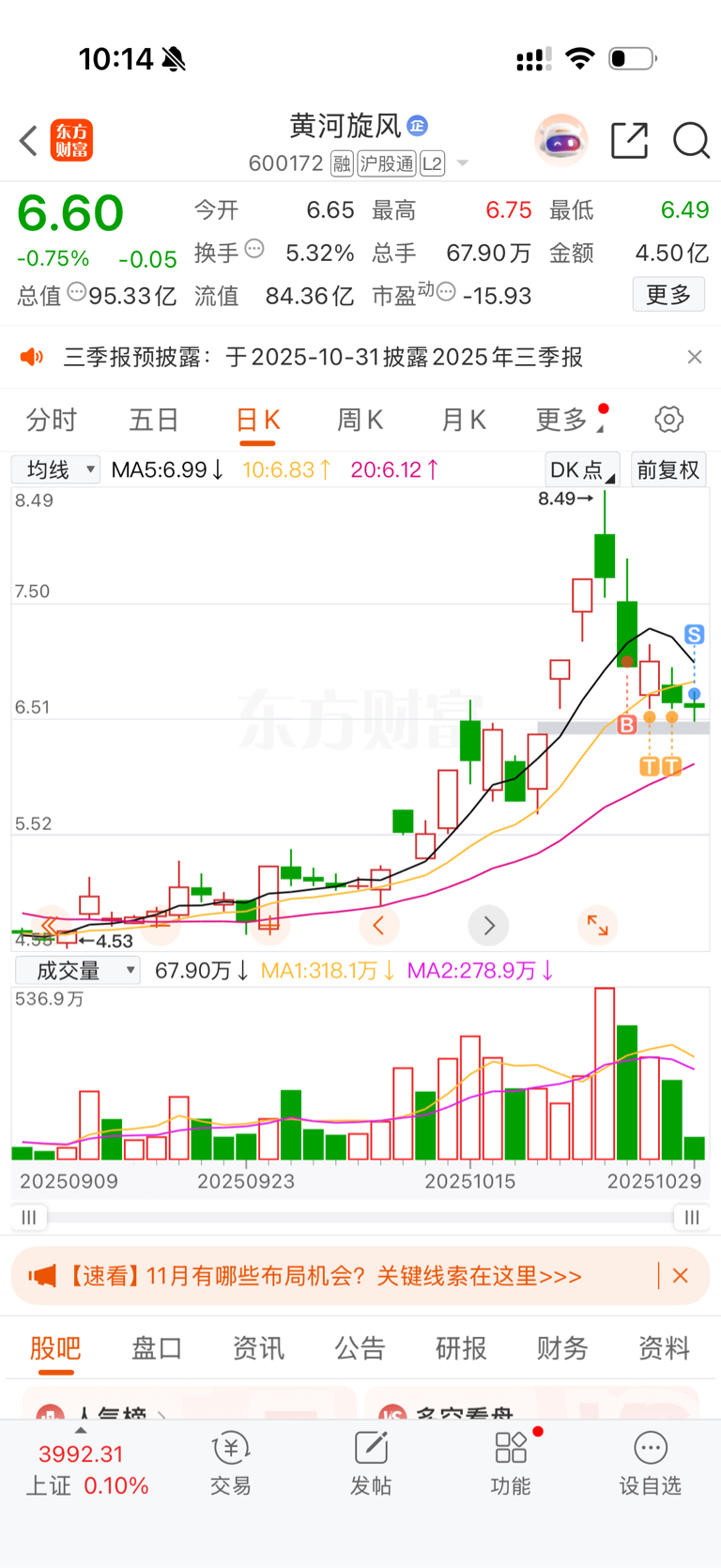 $黄河旋风(SH600172)$ 没赚钱没亏钱的t了好几天,浪费时间,走了