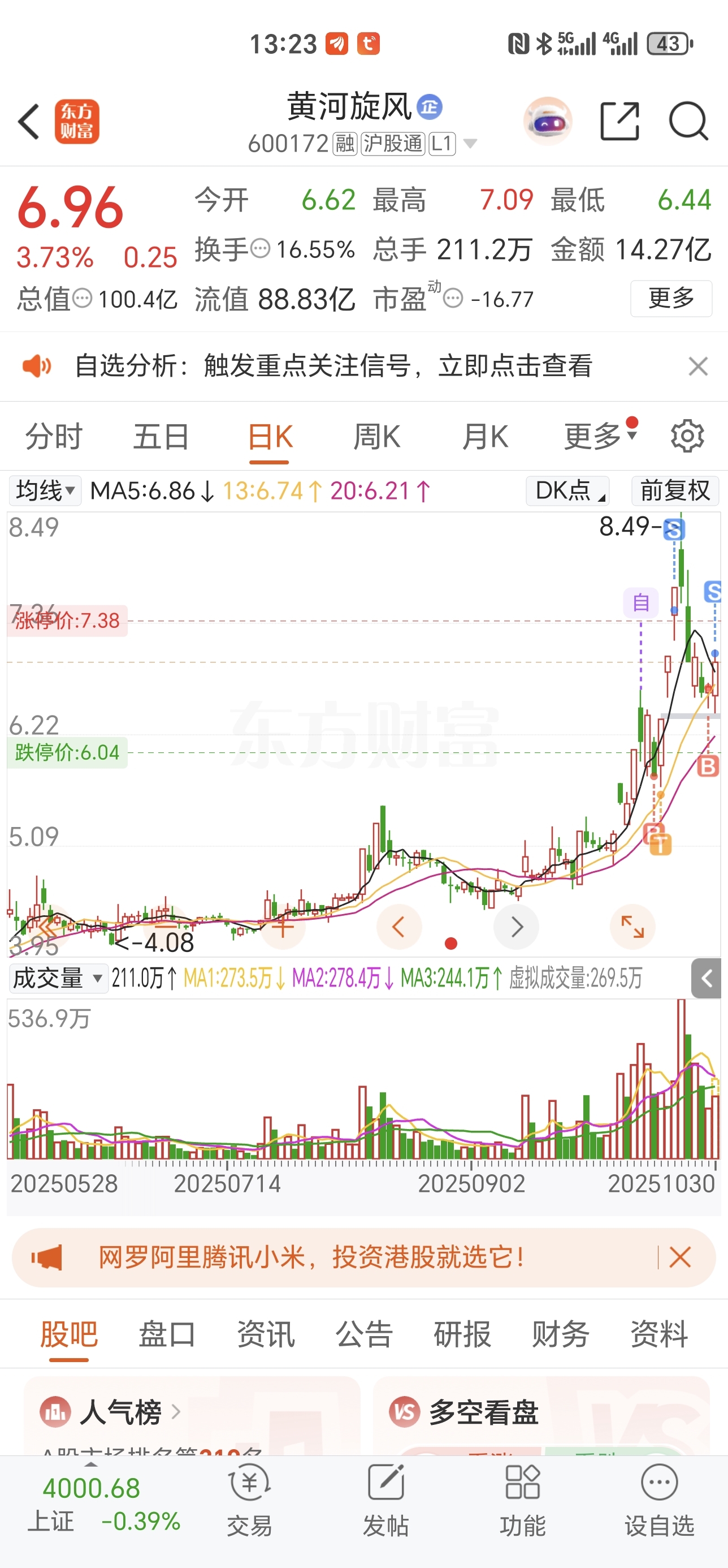 $黄河旋风(SH600172)$ 好股,每次都不让我亏钱!