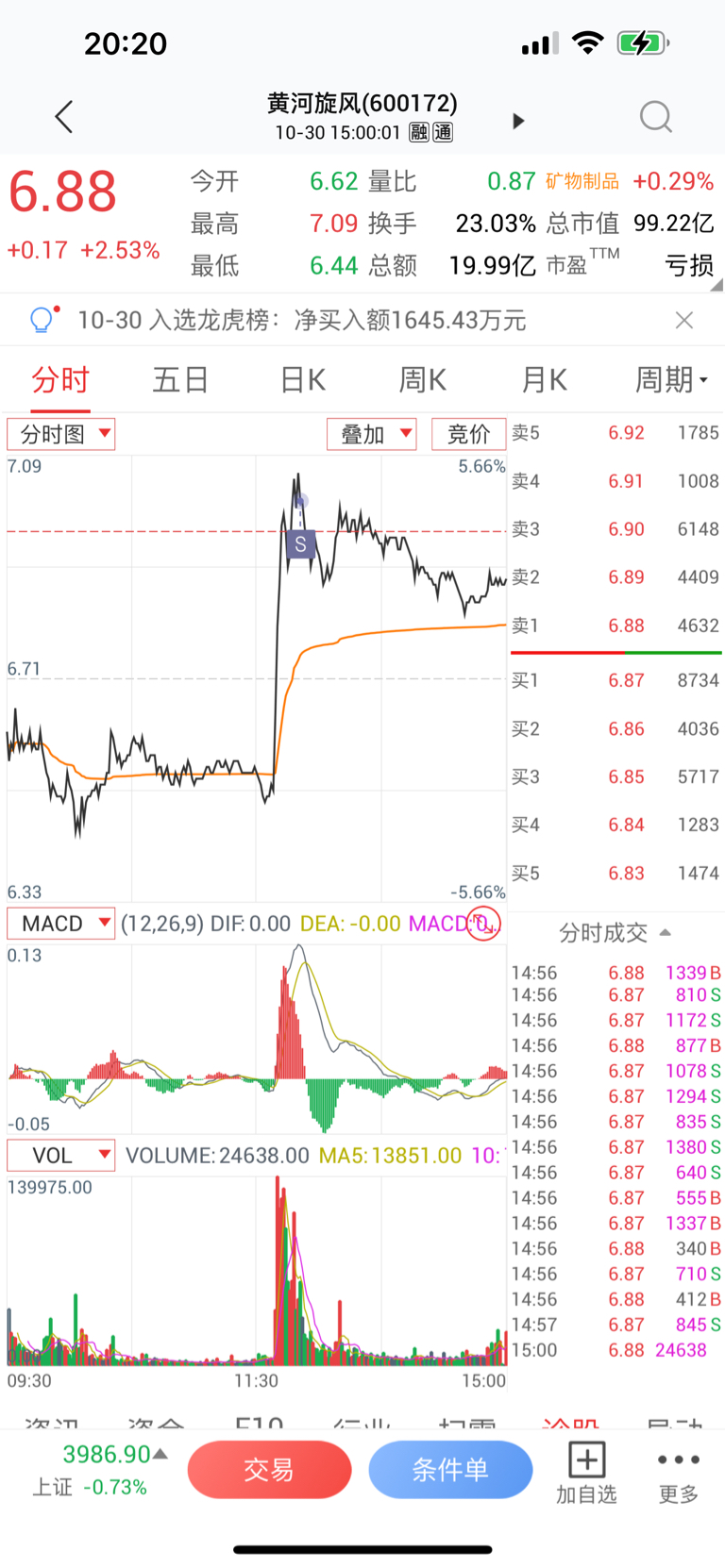$黄河旋风(SH600172)$